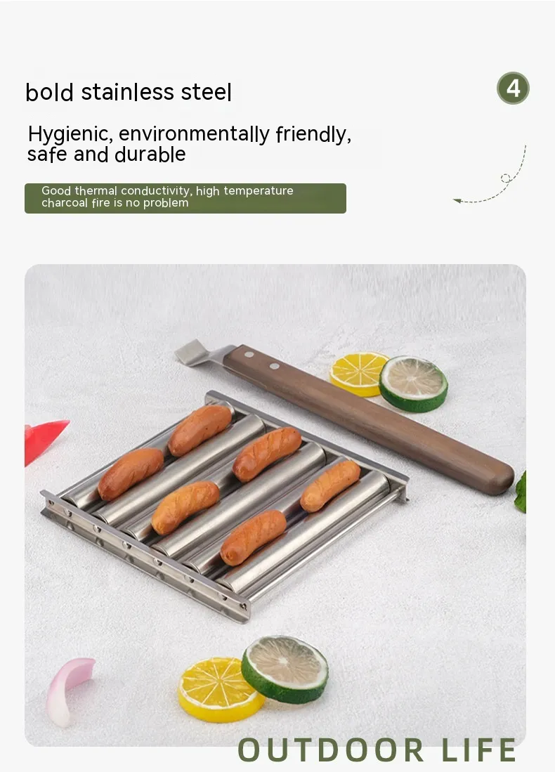 Rotating Hot Dog Grill Rack with Detachable Wood Handle is a practical addition to any outdoor cooking setup. With its even cooking design and user-friendly features, it helps make BBQs and camping meals easier and more enjoyable.