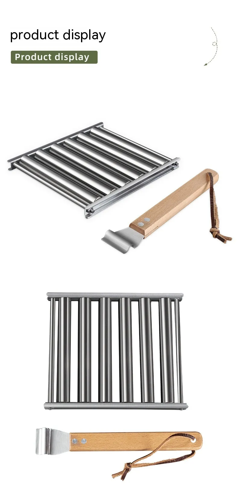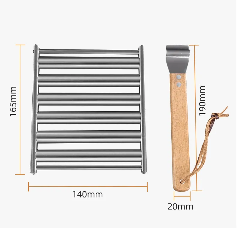 Compact and practical, Rotating Hot Dog Grill Rack with Detachable Wood Handle is easy to carry and use. It offers a simple solution for better grilling results during outdoor cooking.