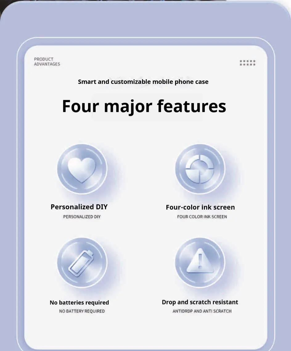 The round projection screen design and modern aesthetics make your phone stand out. Lightweight and slim, the case provides comfortable grip and easy portability while combining style, protection, and cutting-edge technology in one package.