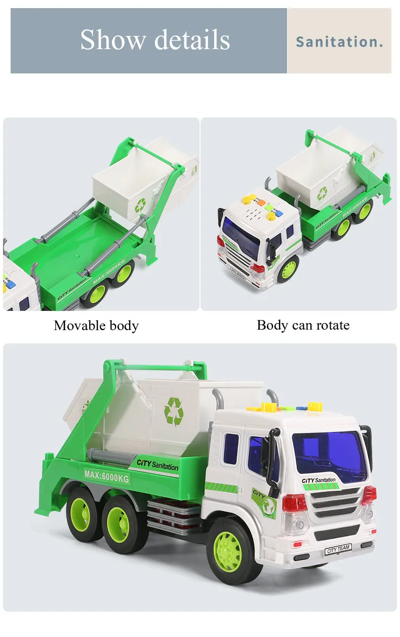 Feature 1: Realistic Design – Designed to replicate real-life rubbish trucks, these toys come with features like a movable arm and a removable bin, giving kids a fun and educational experience as they role-play waste management.