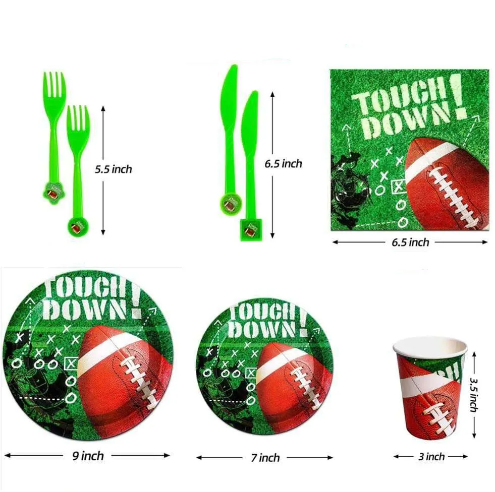 Choose tableware that reflects the rugby theme. Opt for plates, cups, napkins, and cutlery featuring rugby motifs or team logos. Disposable tableware with rugby-inspired designs (like prints of rugby balls, goals, or stadiums) can make clean-up easier while still maintaining the sporty vibe. For a more upscale event, you could even consider having custom plates with rugby-themed prints or etched designs.