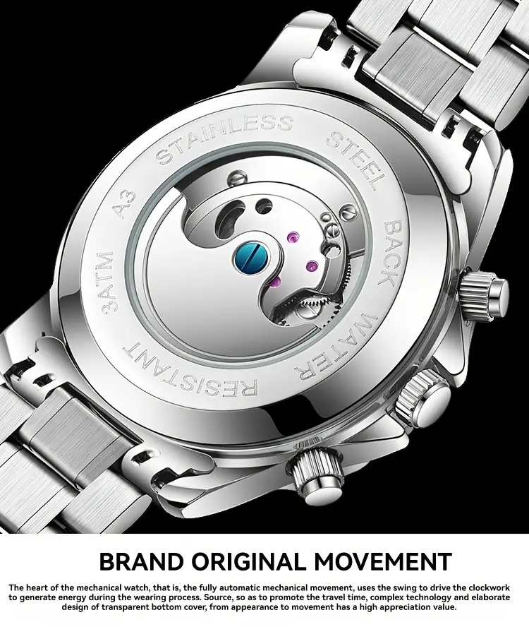 - Automatic Mechanical Movement: Powered by your wrist's natural motion, no batteries required.
