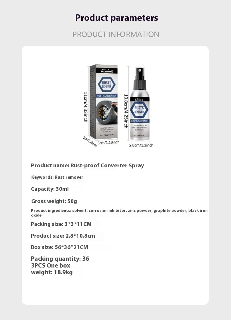 Overall, the Rayhong™ Rust Converter Spray offers a simple and effective way to manage rust. It helps protect, restore, and maintain metal surfaces with minimal effort.
