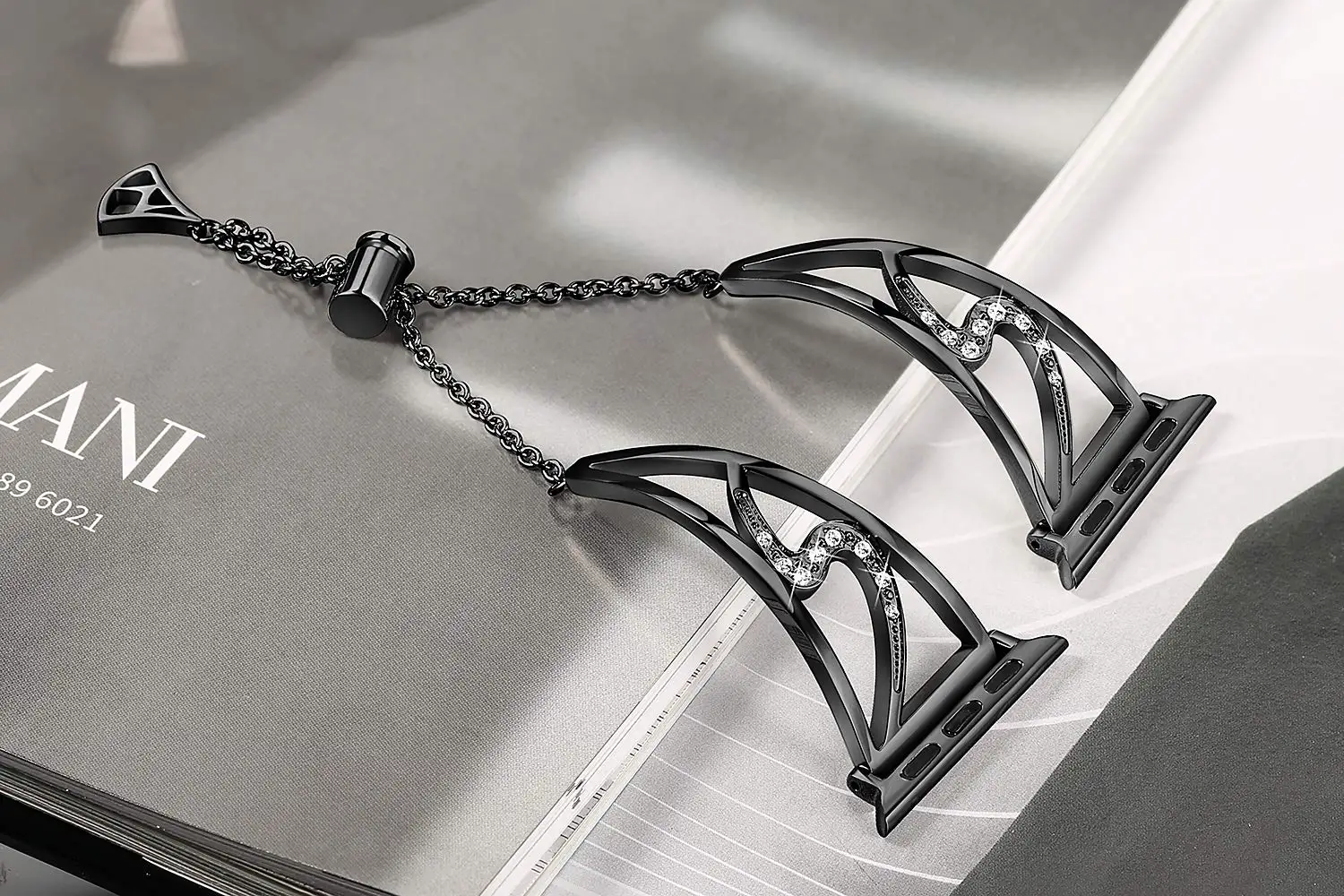 3.Elegant slim band set with rhinestones. Just enough bling to make it very fashionable. Makes your iwatch band look like a jewelry. A nice option to wear the apple watch with your dresses. Brings you lots of compliments
