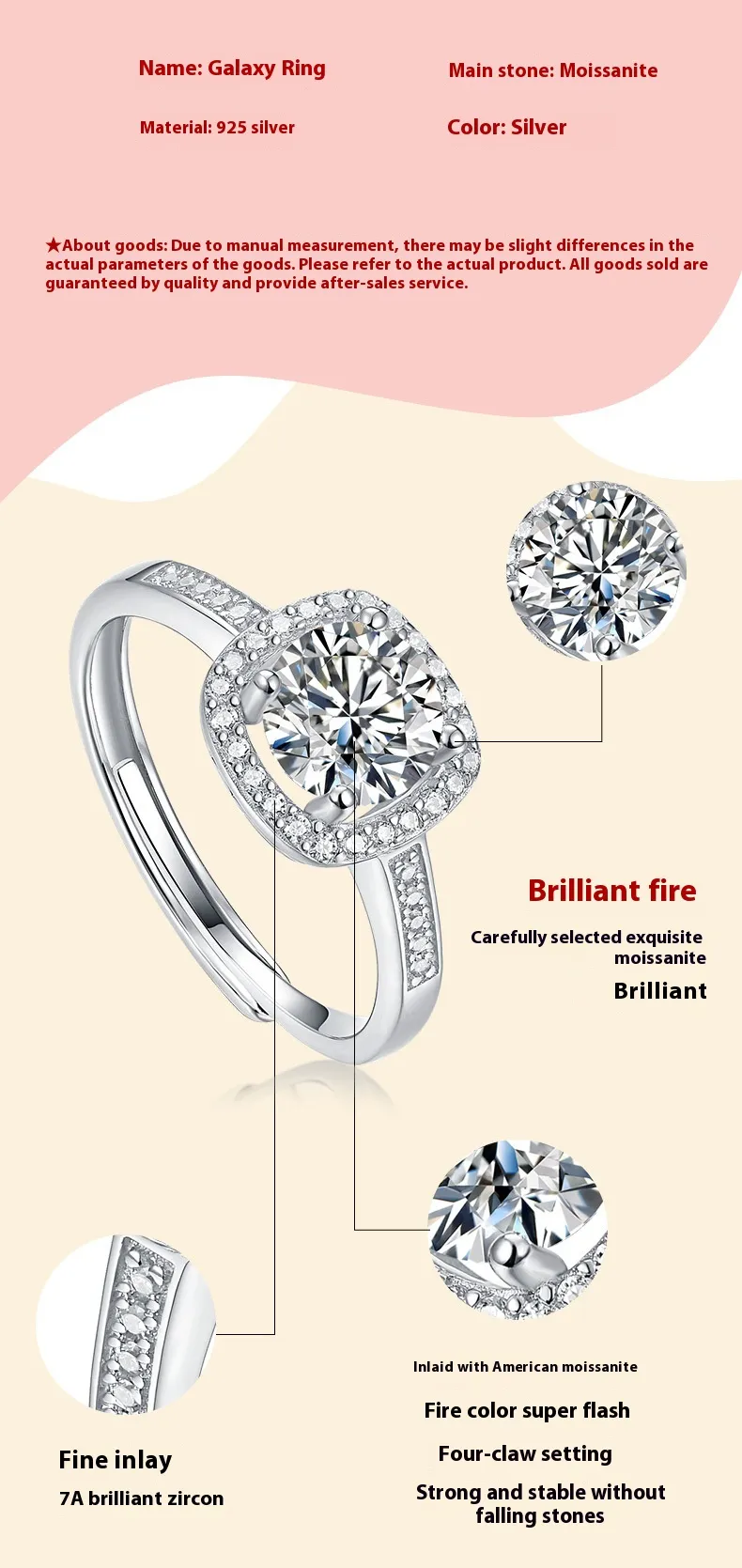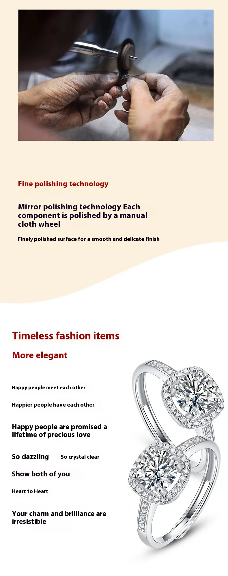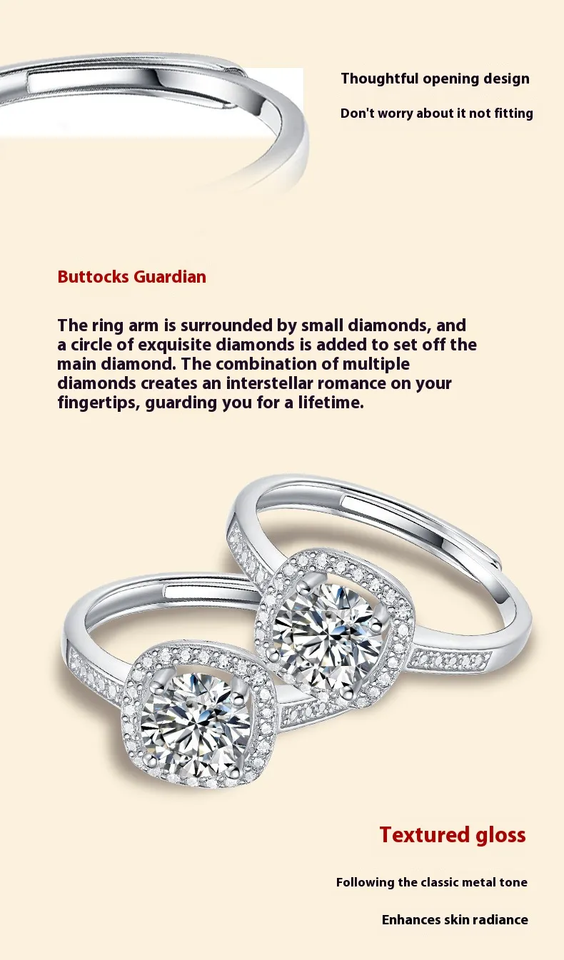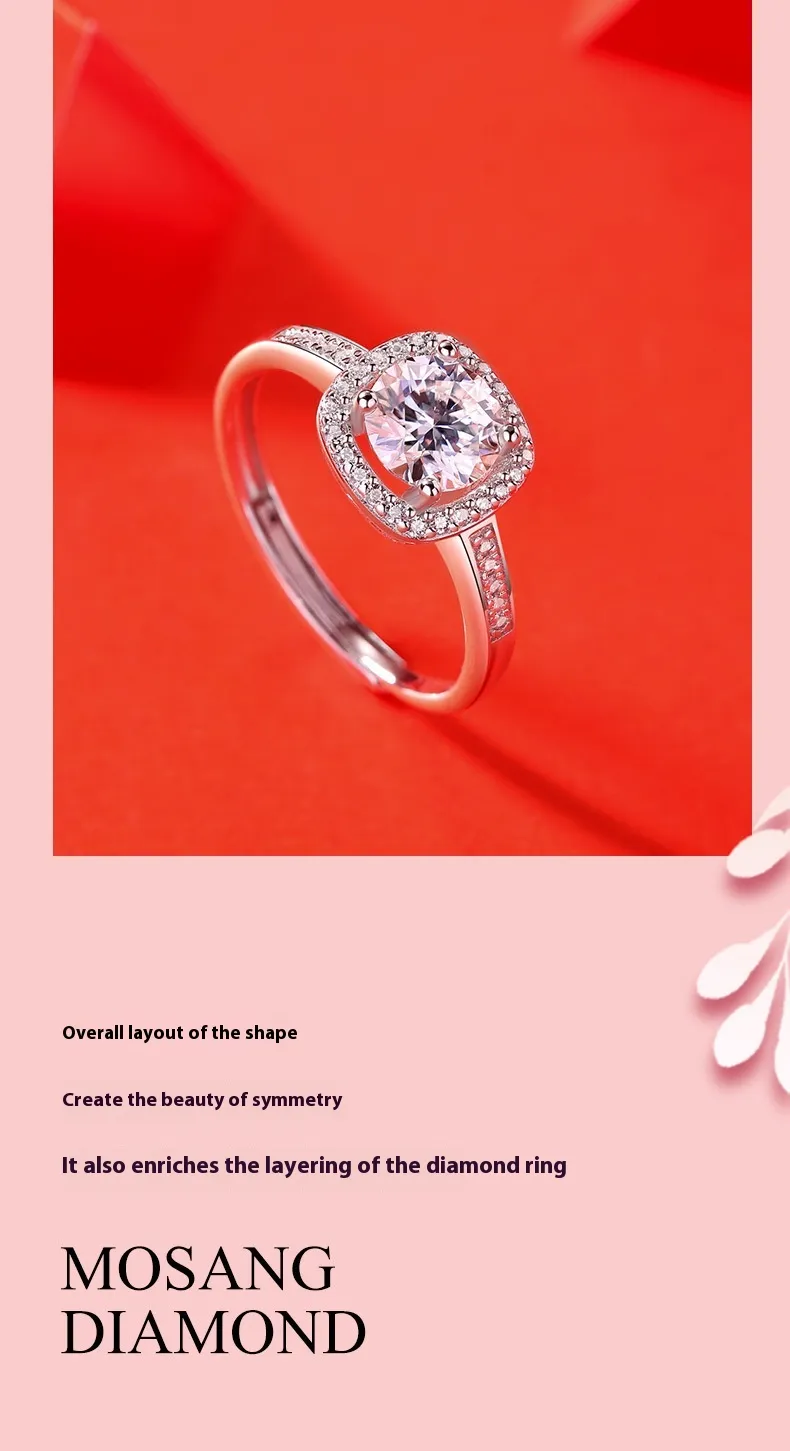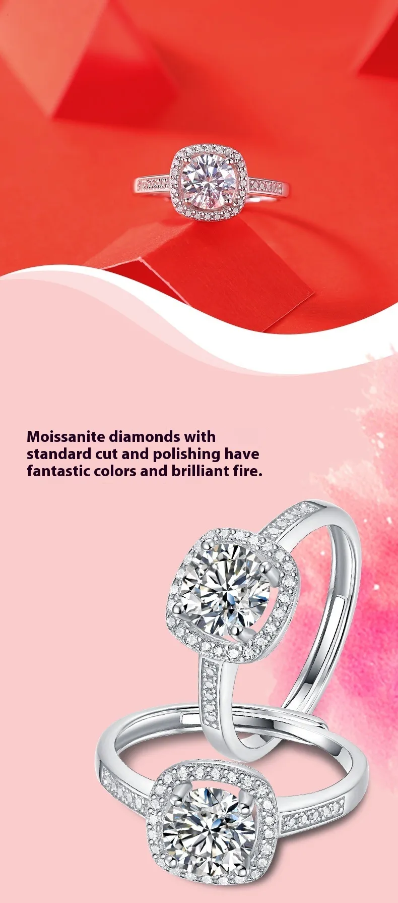 S925 Silver Ring Square Surrounding Ring Set With Moissanite