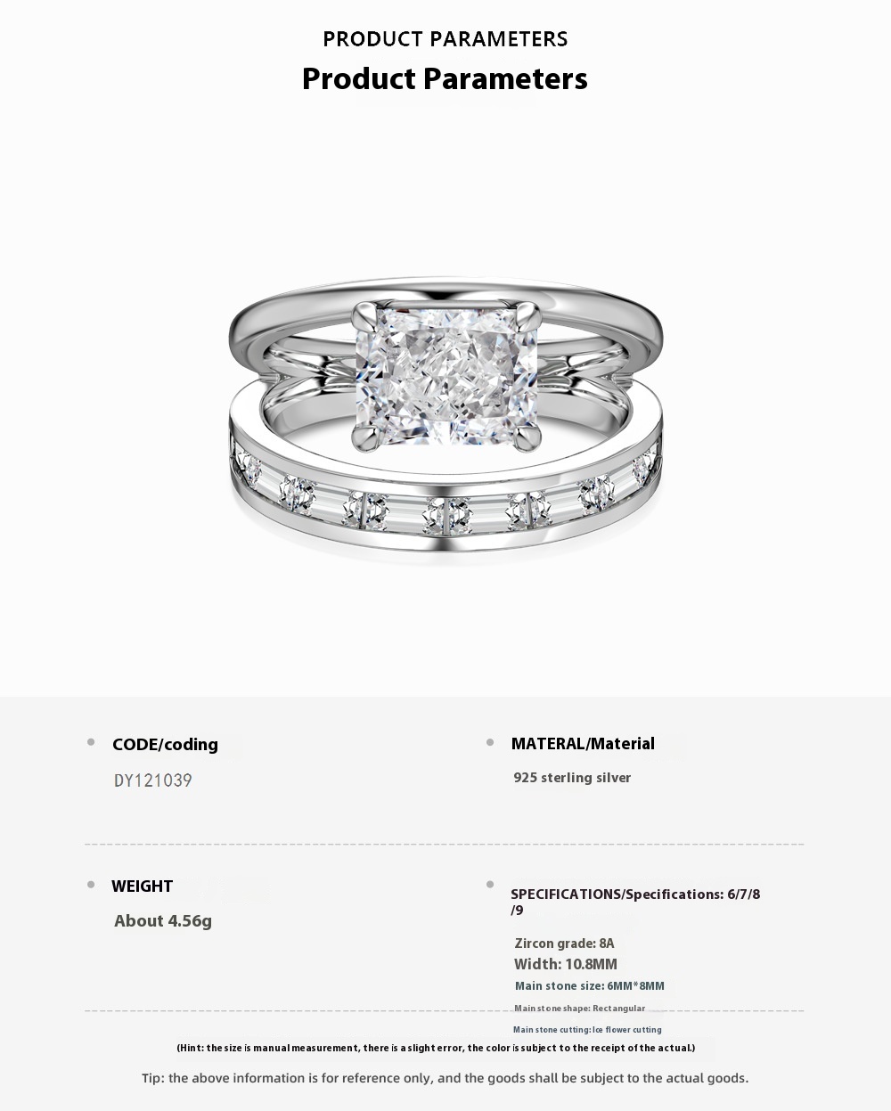 - Available Sizes: The S925 White Rectangular Zircon Double-layer Ring is available in various sizes to ensure a perfect fit for everyone. The availability of multiple sizes guarantees that you can find the ideal fit for your finger, enhancing the ring's comfort and wearability.