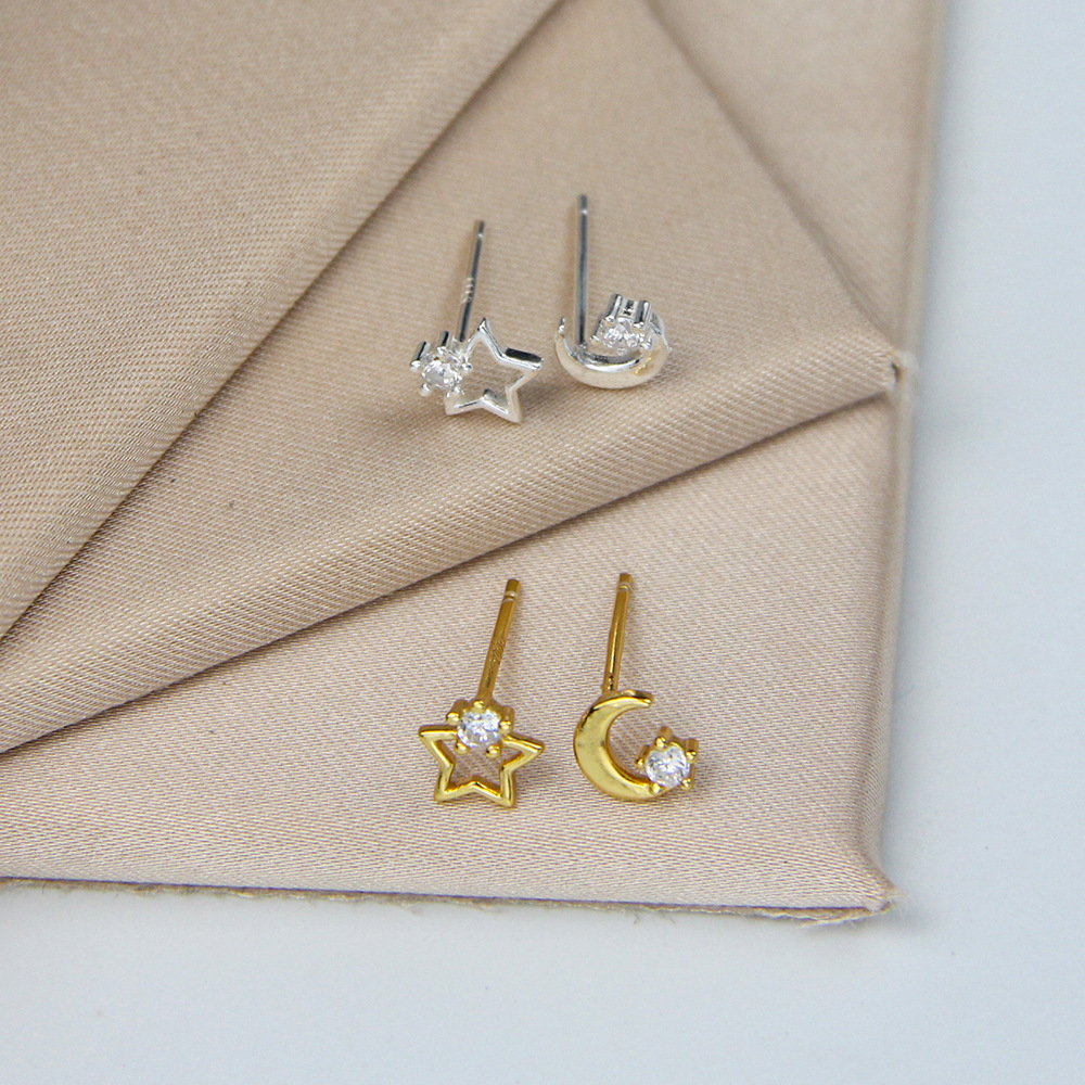 Color: star and moon ear studs (silver), star and moon ear studs (gold)