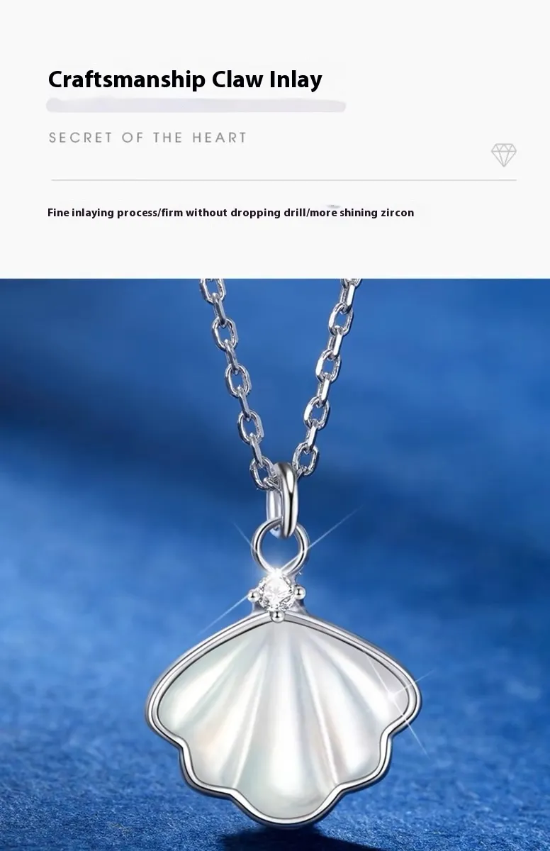 S999 Sterling Silver Shell Necklace For Women Ins Simple Clavicle Chain