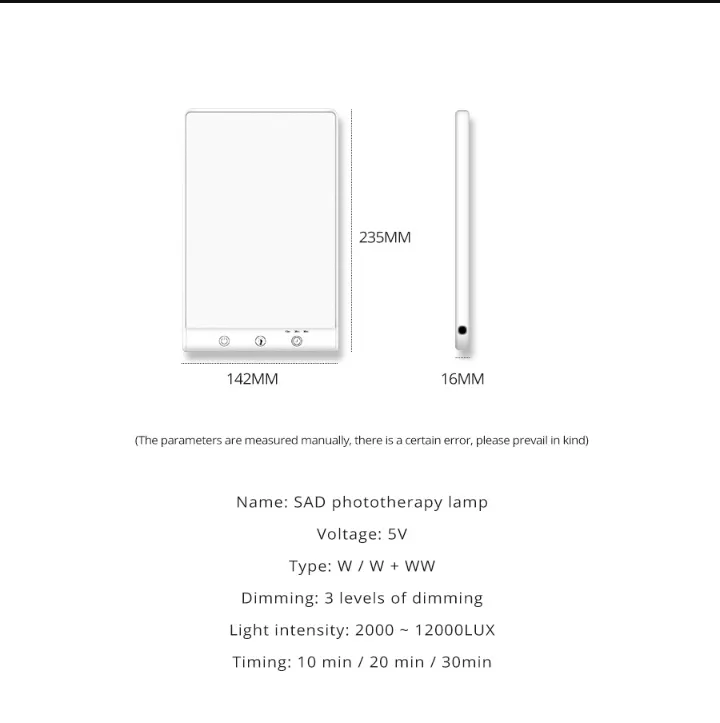 The SAD Lamp is a powerful, natural solution for combating the effects of seasonal mood changes and improving your overall mental health. With adjustable brightness, a safe, UV-free design, and energy-efficient LED technology, this lamp provides an easy and effective way to bring light therapy into your life. Make every day brighter and feel more energized with the SAD Lamp.