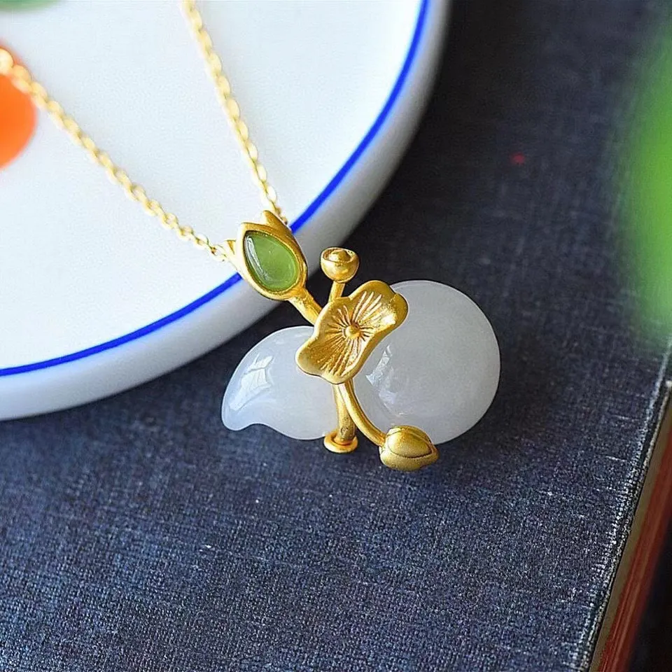 “I purchased this pendant as a reminder of my spiritual journey, and it has become a treasured part of my collection. The gourd symbolizes prosperity, and the lotus leaf brings a sense of peace. I couldn’t be happier with this purchase.” — James M., Wellington