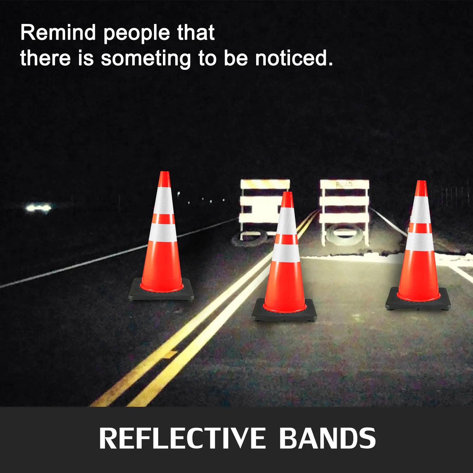 Example: The reflective stripes make these cones easily visible, even in poor weather or low-light environments, helping to prevent accidents. -