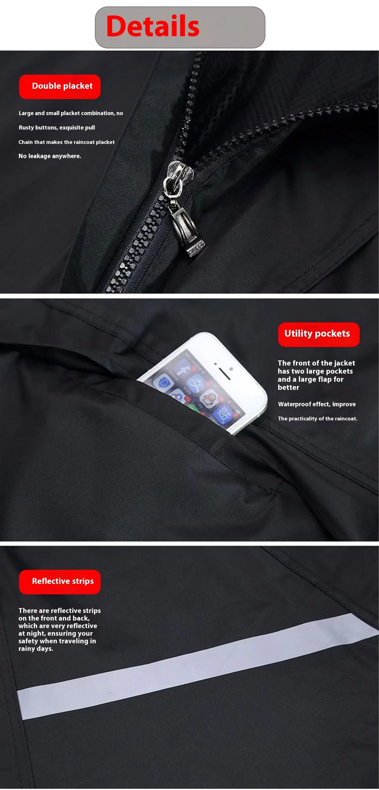The Safety Waterproof Motorcycle Raincoat is also designed with a convenient storage pocket, allowing you to keep your essentials close at hand while riding. Whether you're caught in a sudden storm or preparing for a long ride in uncertain weather, this raincoat is the perfect protective layer for any motorcyclist.