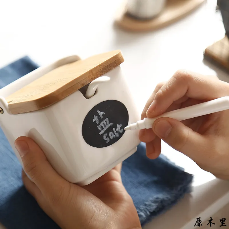 Seasoning jar (with black label and pen for writing at will)