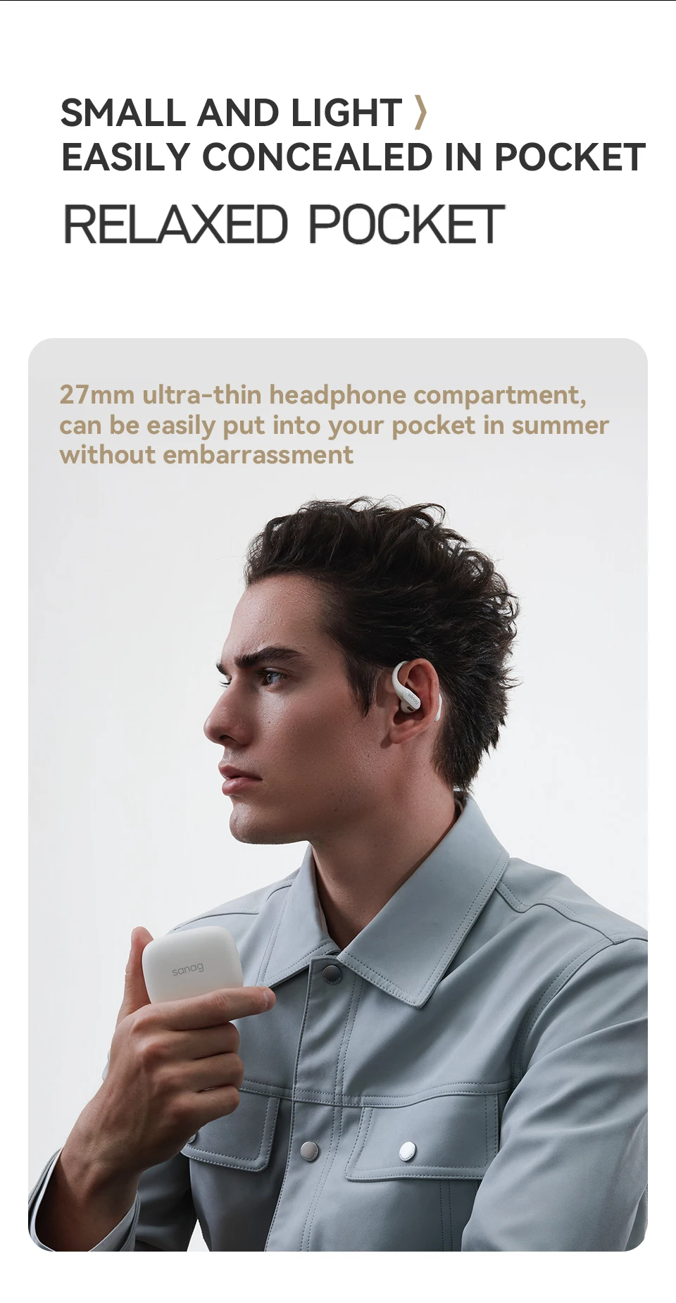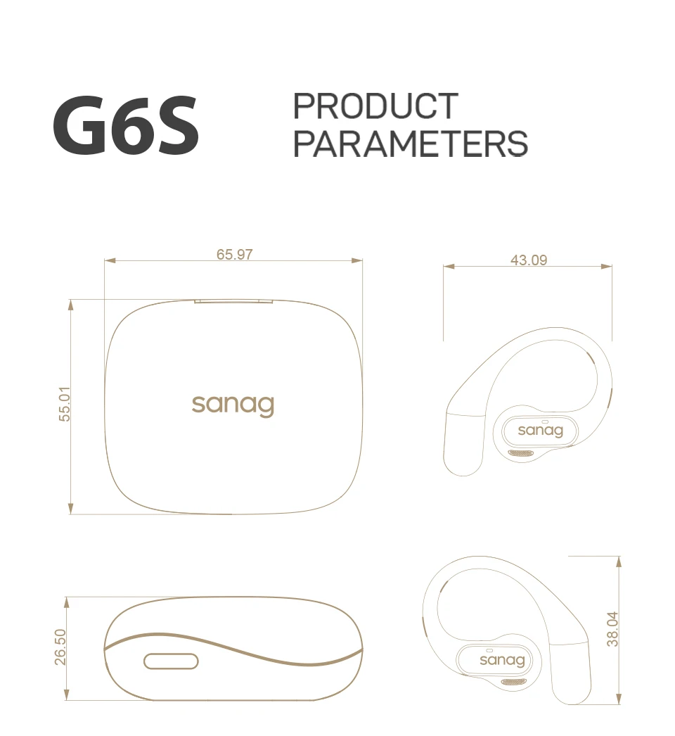 The Sanag G6S Open Ear Bluetooth Earphone features an ergonomic ear hook design, providing a comfortable and secure fit for sports and running. With HiFi sound quality and TWS technology, these wireless headphones are perfect for gaming and everyday use.
