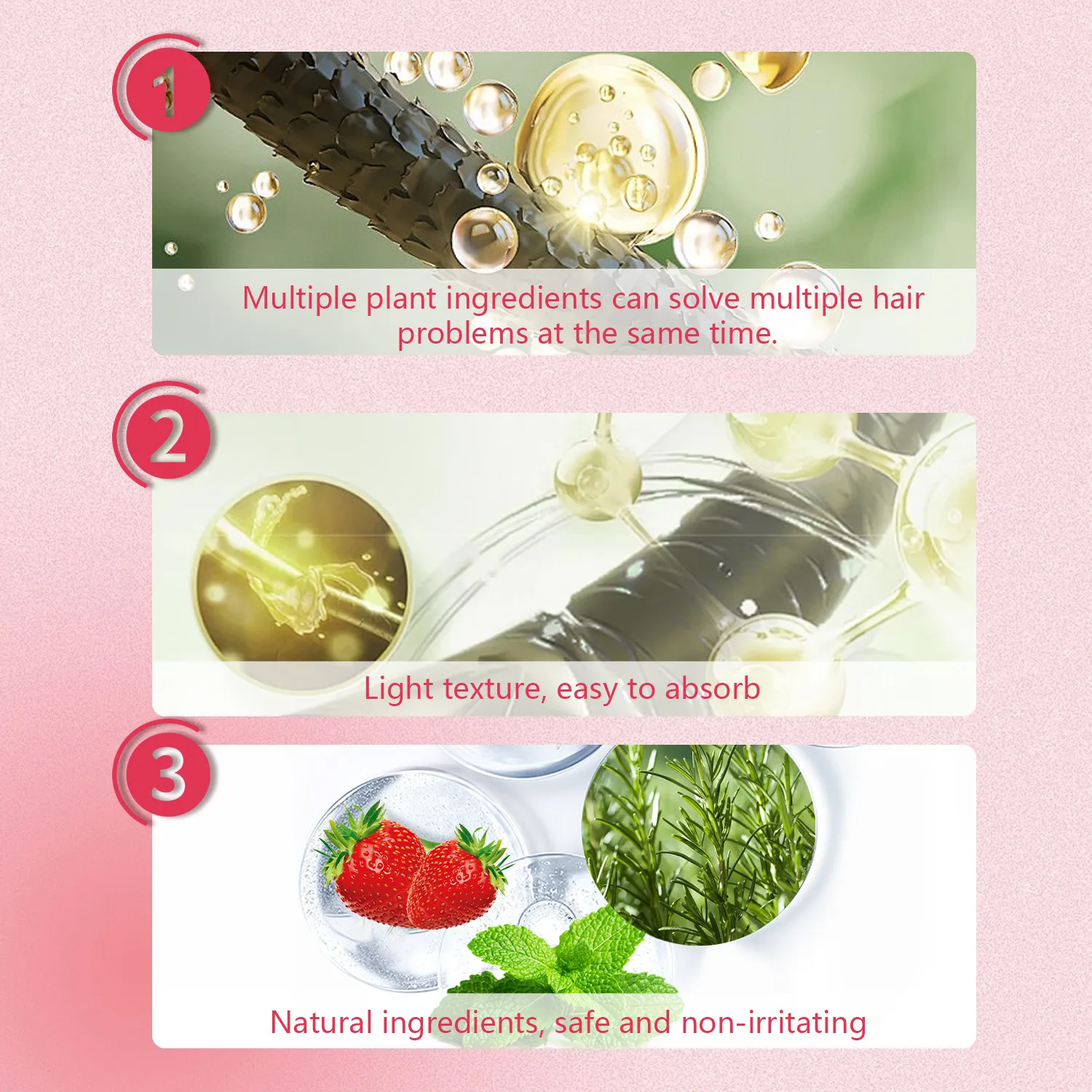 Strawberry and mint fragrance enhances hair care experience.