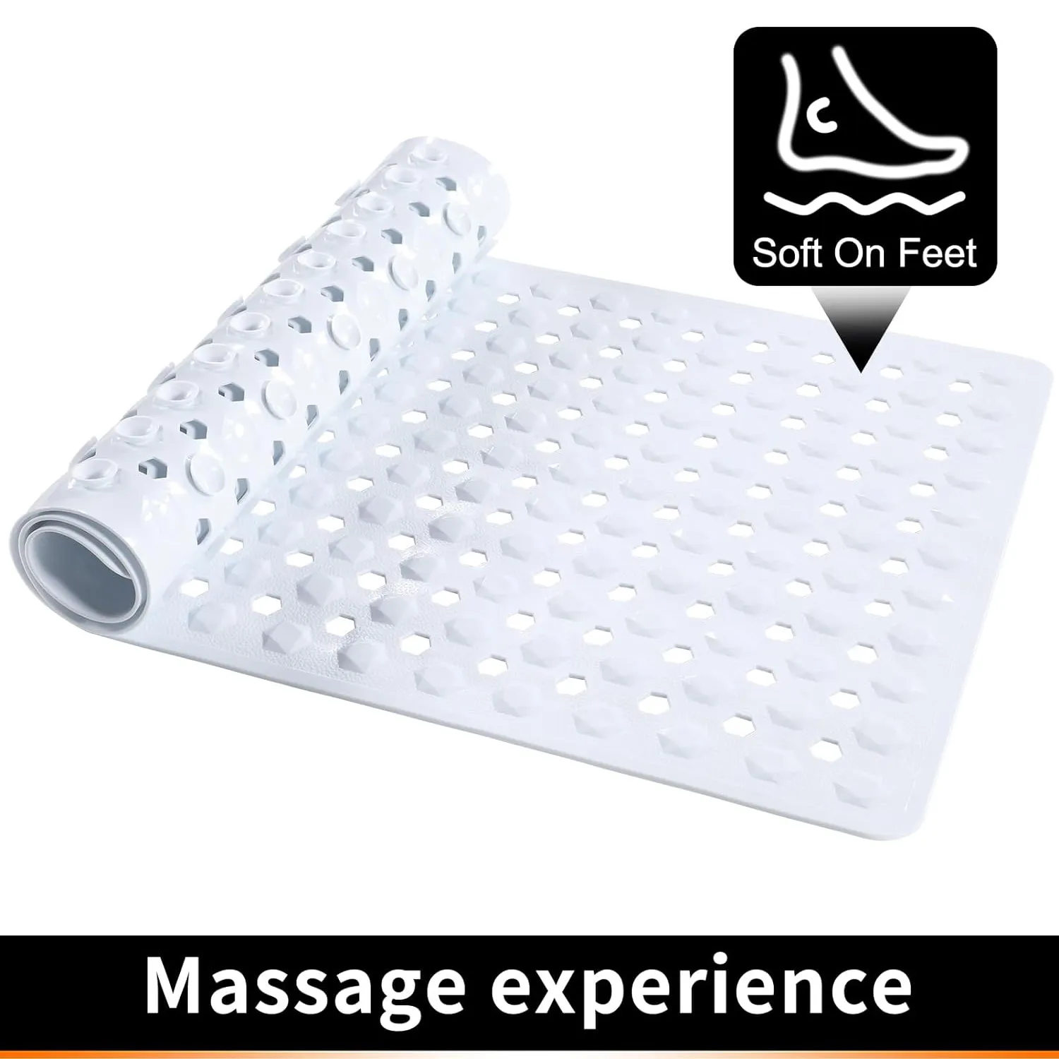 The mat’s design ensures comfort during use, allowing you to stand and move comfortably while showering. The soft surface provides cushioning for your feet, even on hard bathroom floors.