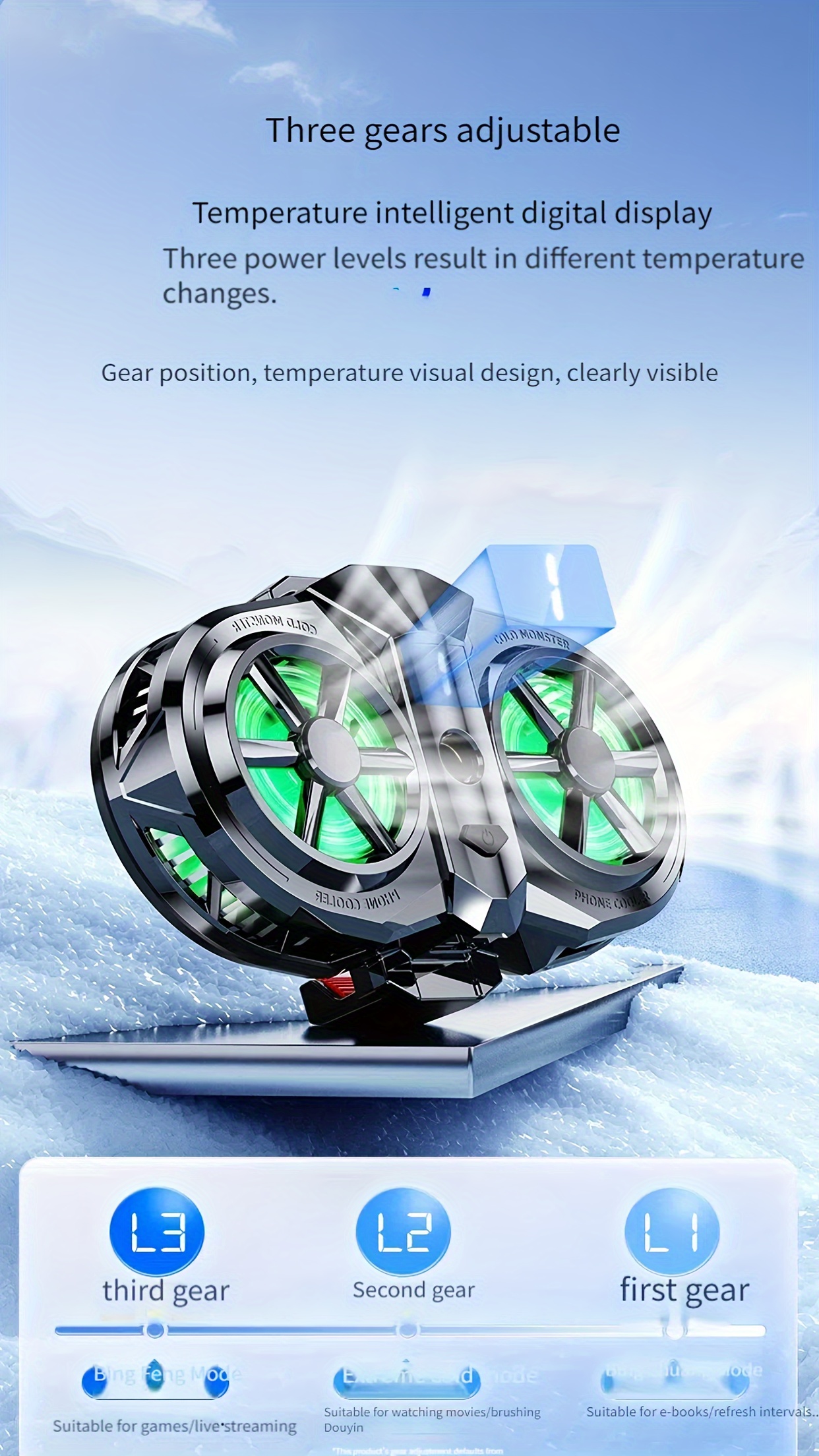 The Semiconductor Cooling and Heat Dissipation Back Clip Fan Three-Second Cooling Large Area Heat Dissipation Suitable for Various Models of Mobile Phones Live Broadcasting Playing Games and Flashing Without Blocking features a three-level adjustable cooling system, allowing users to customize performance based on their needs. Whether for casual use or intensive gaming, the Semiconductor Cooling and Heat Dissipation Back Clip Fan Three-Second Cooling Large Area Heat Dissipation Suitable for Various Models of Mobile Phones Live Broadcasting Playing Games and Flashing Without Blocking adapts accordingly.
