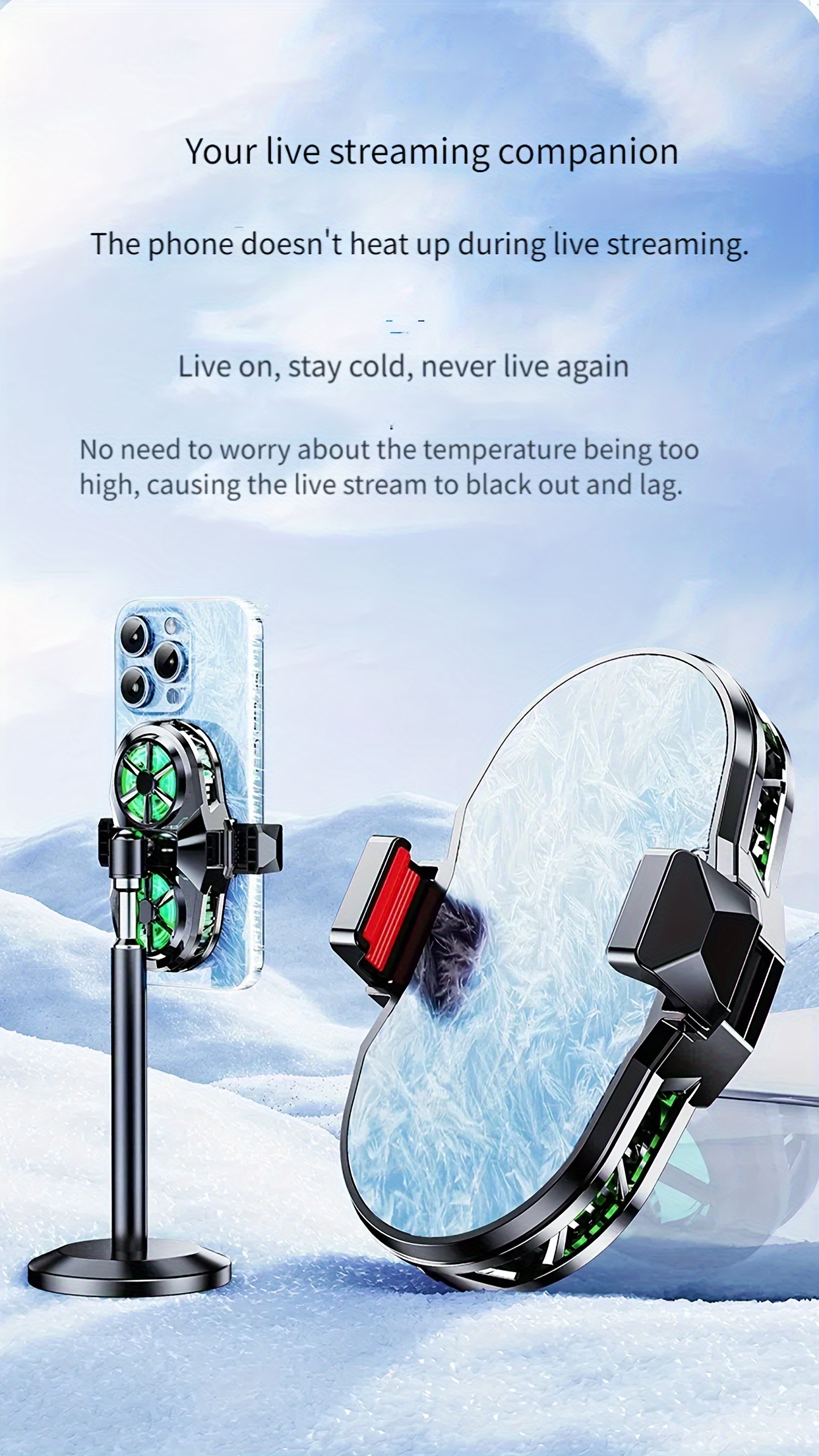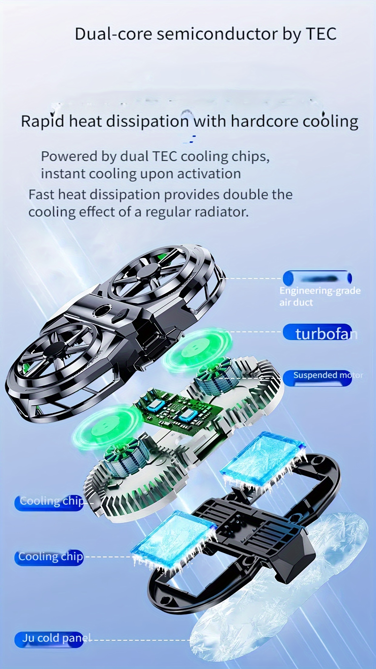 The Semiconductor Cooling and Heat Dissipation Back Clip Fan Three-Second Cooling Large Area Heat Dissipation Suitable for Various Models of Mobile Phones Live Broadcasting Playing Games and Flashing Without Blocking is an advanced cooling accessory engineered to rapidly reduce smartphone temperature using semiconductor refrigeration technology. With its dual-core cooling system, the Semiconductor Cooling and Heat Dissipation Back Clip Fan Three-Second Cooling Large Area Heat Dissipation Suitable for Various Models of Mobile Phones Live Broadcasting Playing Games and Flashing Without Blocking delivers powerful heat dissipation within seconds.