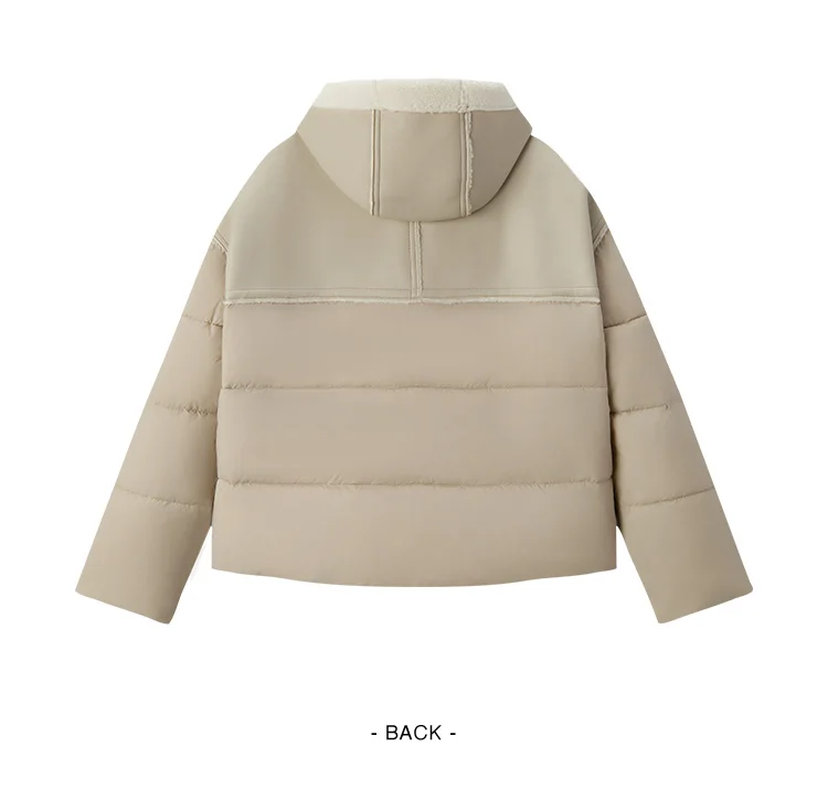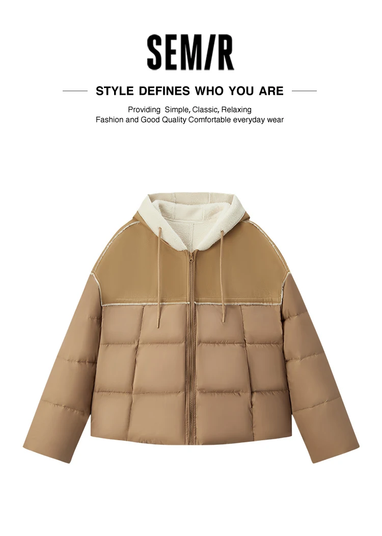 Semir Cotton Jacket Women Patchwork Loose Cotton Jacket Retro 2024 Winter New Furry Hooded Puffer Coat Trendy Cotton Jacket