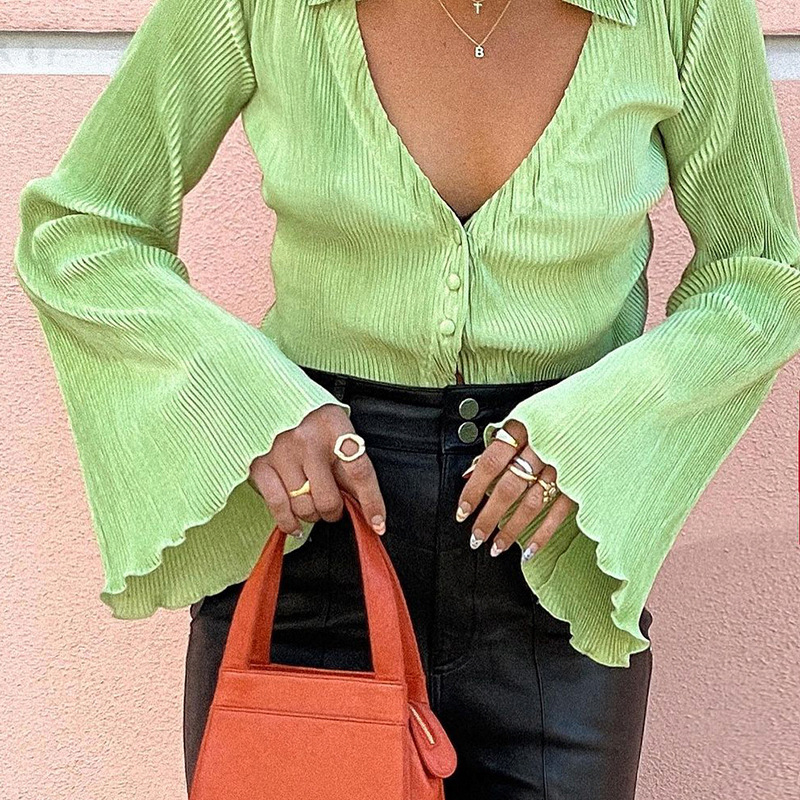 Sexy Autumn And Winter Deep V Neck Slim Fit Shirt