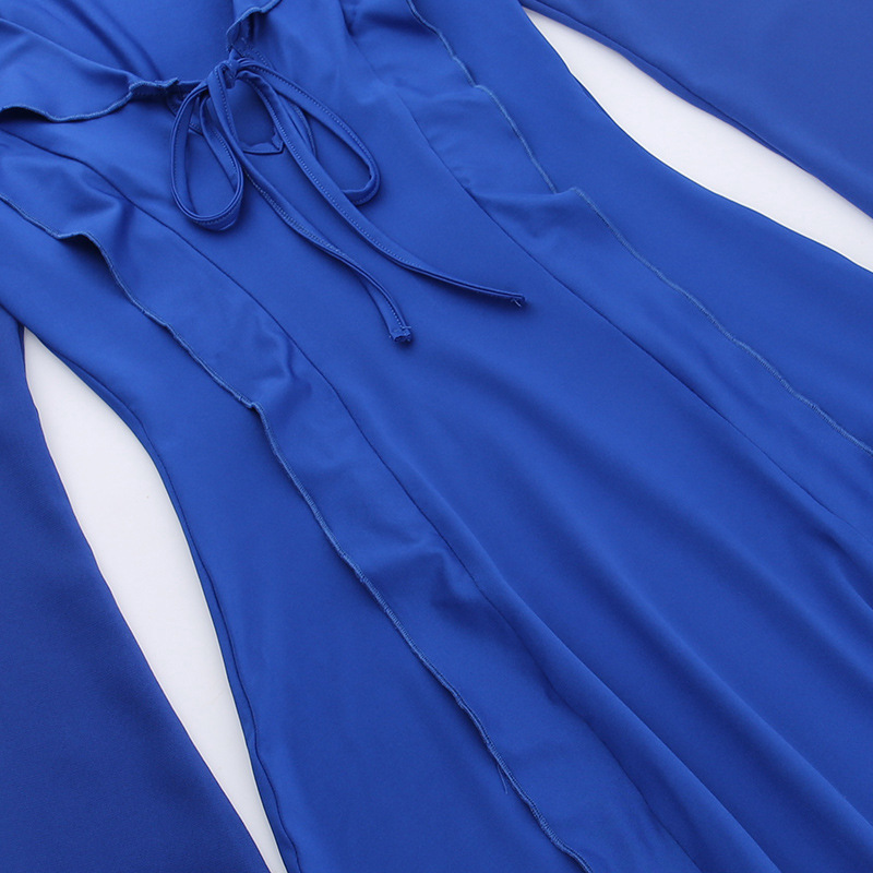Step into Y2K-inspired fashion with the Sexy Ruffled V-Neck Lace-Up Dress, designed for the bold and confident woman. This long-sleeved dress features a seductive V-neckline with lace-up detailing, giving it a trendy, sexy appeal. The ruffled hem adds a playful touch, while the slim, body-hugging fit beautifully highlights your curves. Perfect for a night out, parties, or a special occasion, this dress is the epitome of style and confidence. The hip-covering length keeps the look elegant and fashion-forward, making it a must-have addition to any wardrobe.