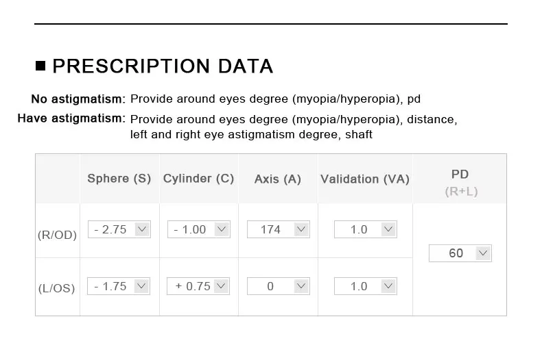 CYLINDER : +2.00~+4.00 or CYL:-2.00~-4.00 Costs Extra 10 USD. (ADD 10$) .