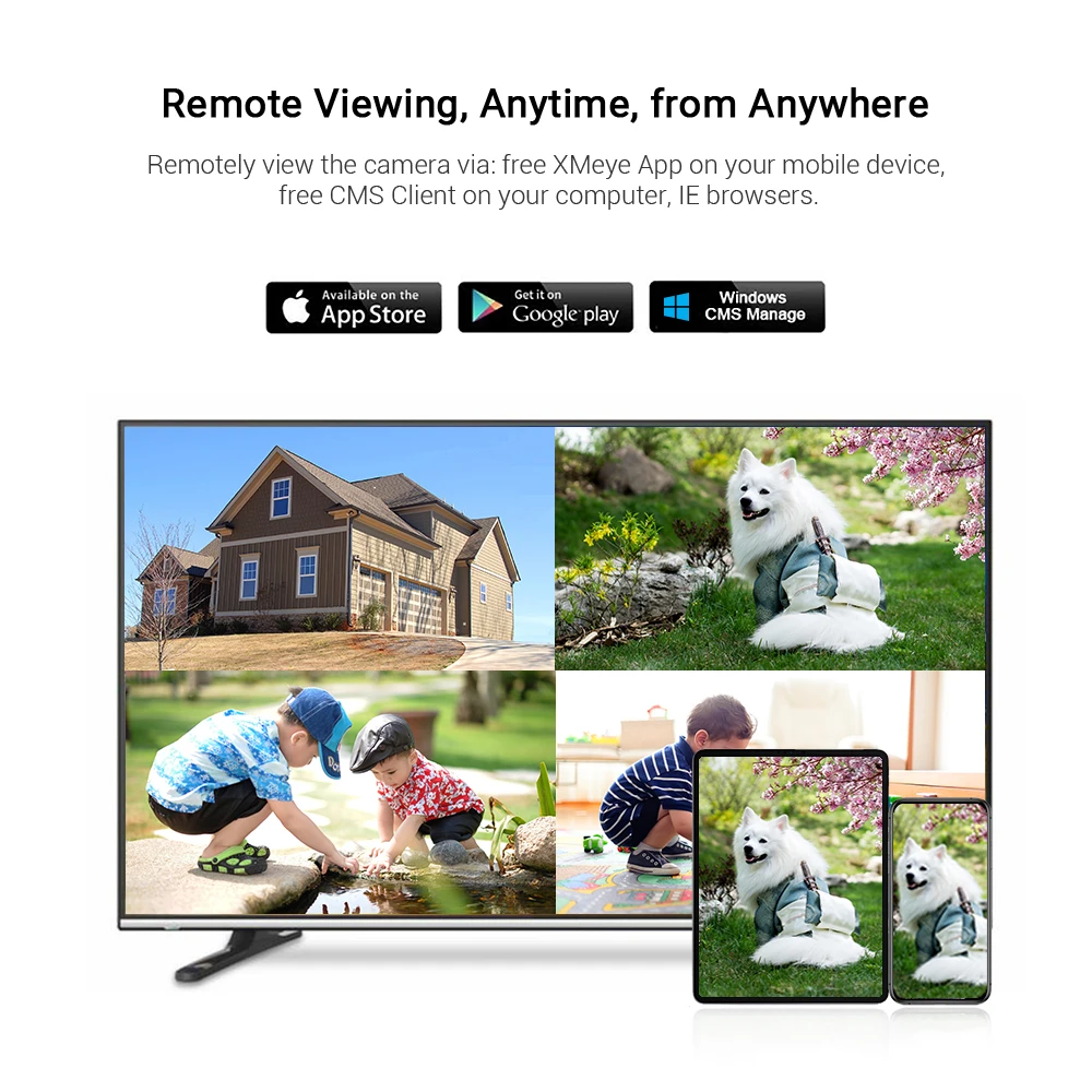 * Support APP(XMeye) and PC (VMS or CMS) Remote View