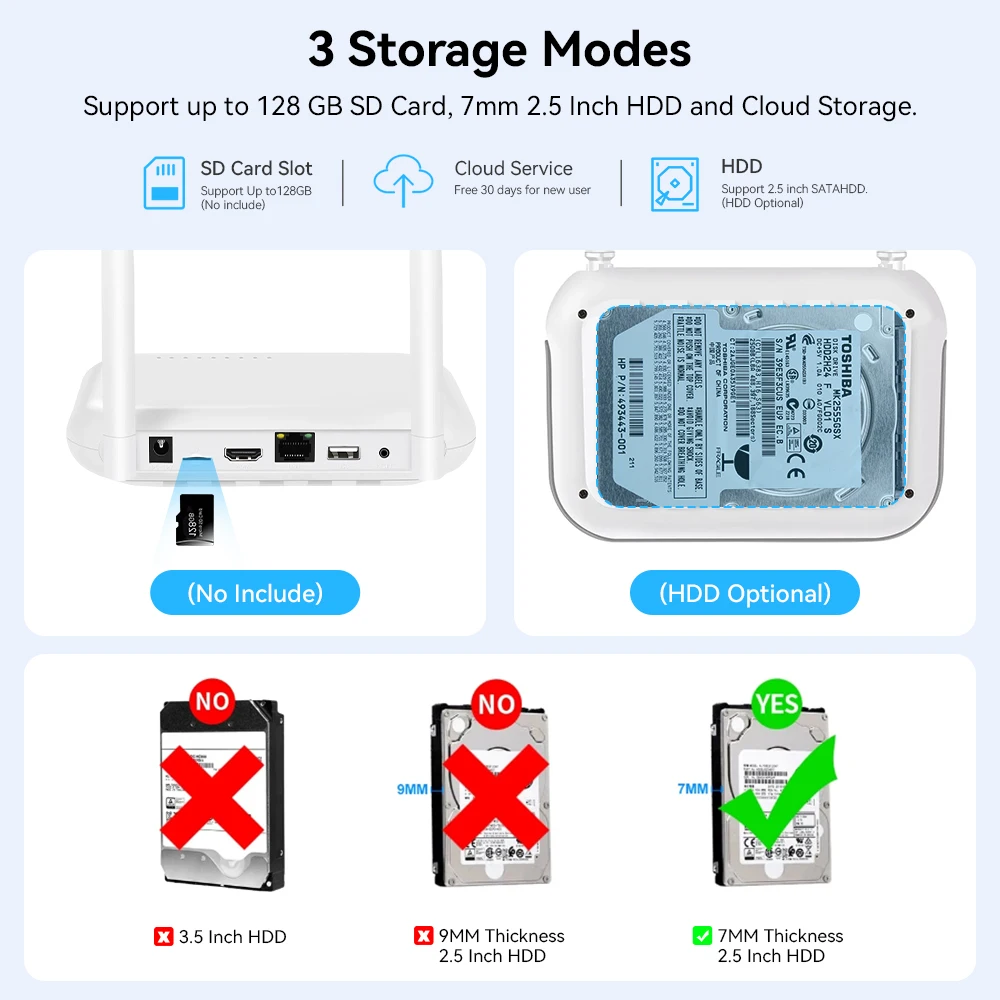 Ships From: CHINA, Plug Standard: AU Plug, Build-in HDD: 1T - Wifi NVR Mini 4CH 8MP/8CH 3MP XMeye WIFI Video Recorder For Wireless Security System TF Card Slot Face Detection P2P H.265