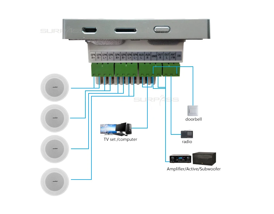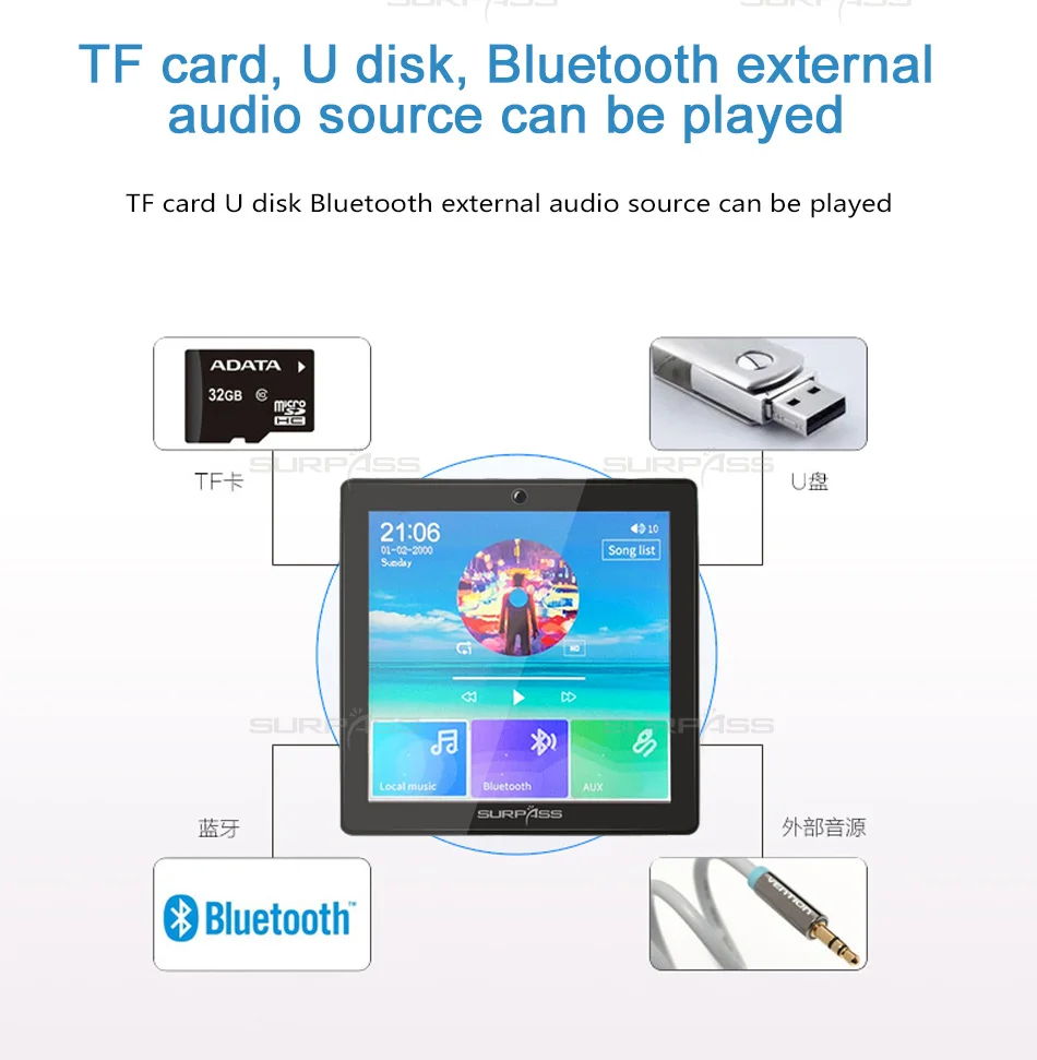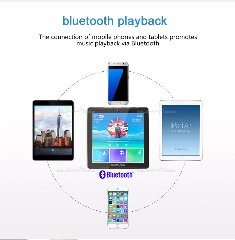3. One way Bluetooth, the bluetooth of this device can only be connected to mobile phones/tablets and other bluetooth devices who's Bluetooth function is two way to play and control the music, CAN NOT be connected to the bluetooth ceiling speakers or TV(one way bluetooth) by bluetooth directly.
