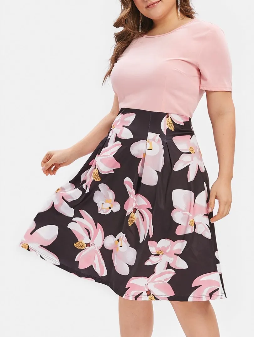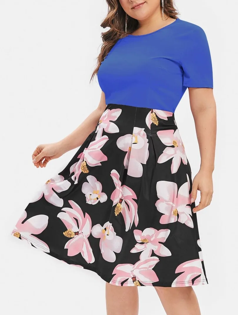 The Short Sleeve Large Dress with Stitching Flowers is the ideal choice for anyone who loves combining style with comfort.