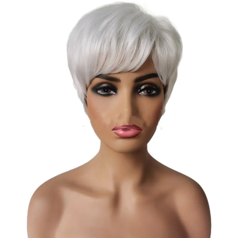 High-Quality Synthetic Fiber: Made from premium synthetic hair, this short white wig looks realistic while remaining