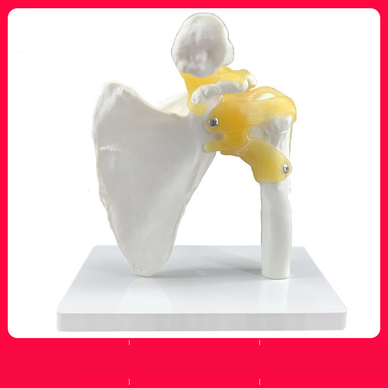 The model accurately depicts the main bones involved in the shoulder joint, including the clavicle, scapula, and humerus, alongside essential ligaments such as the acromioclavicular ligament, coracoacromial ligament, and glenohumeral ligaments. Each structure is carefully crafted to resemble the real anatomy of the shoulder, allowing students and professionals to study the joint's intricate details and understand how these components work together.