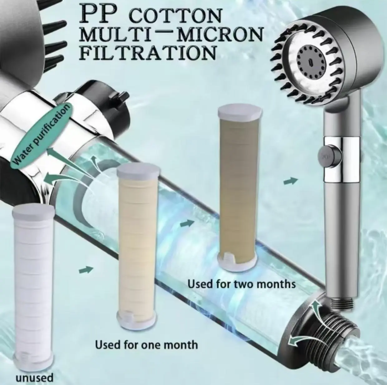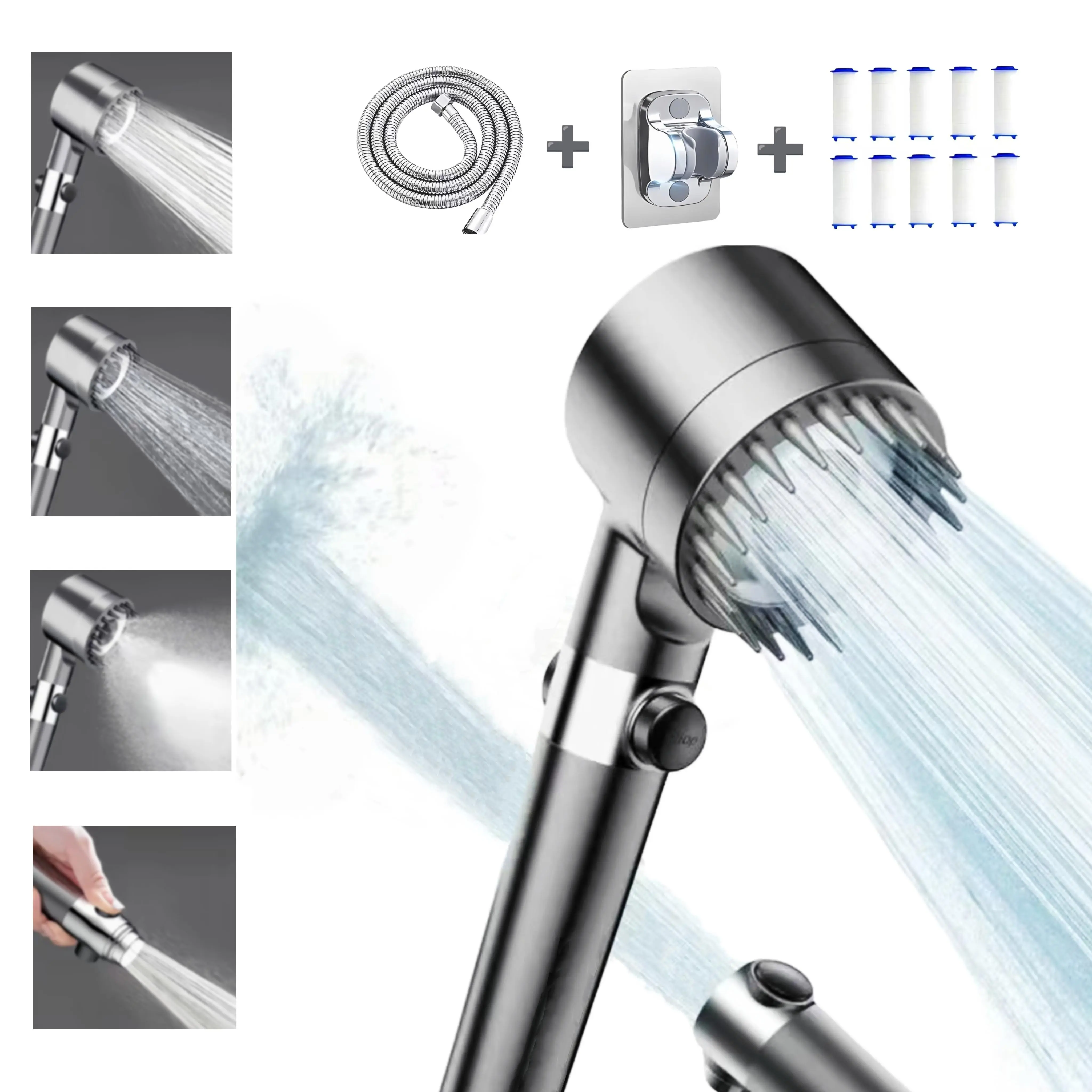 Durable and long-lasting filter: This handheld shower head is equipped with a polypropylene cotton filter, which can effectively remove rust, dirt, and other deposits, ensuring a healthier shower. It is made of high-quality ABS plastic and chrome plated surface, and the ion shower drip head filter shower head is designed for daily use.
