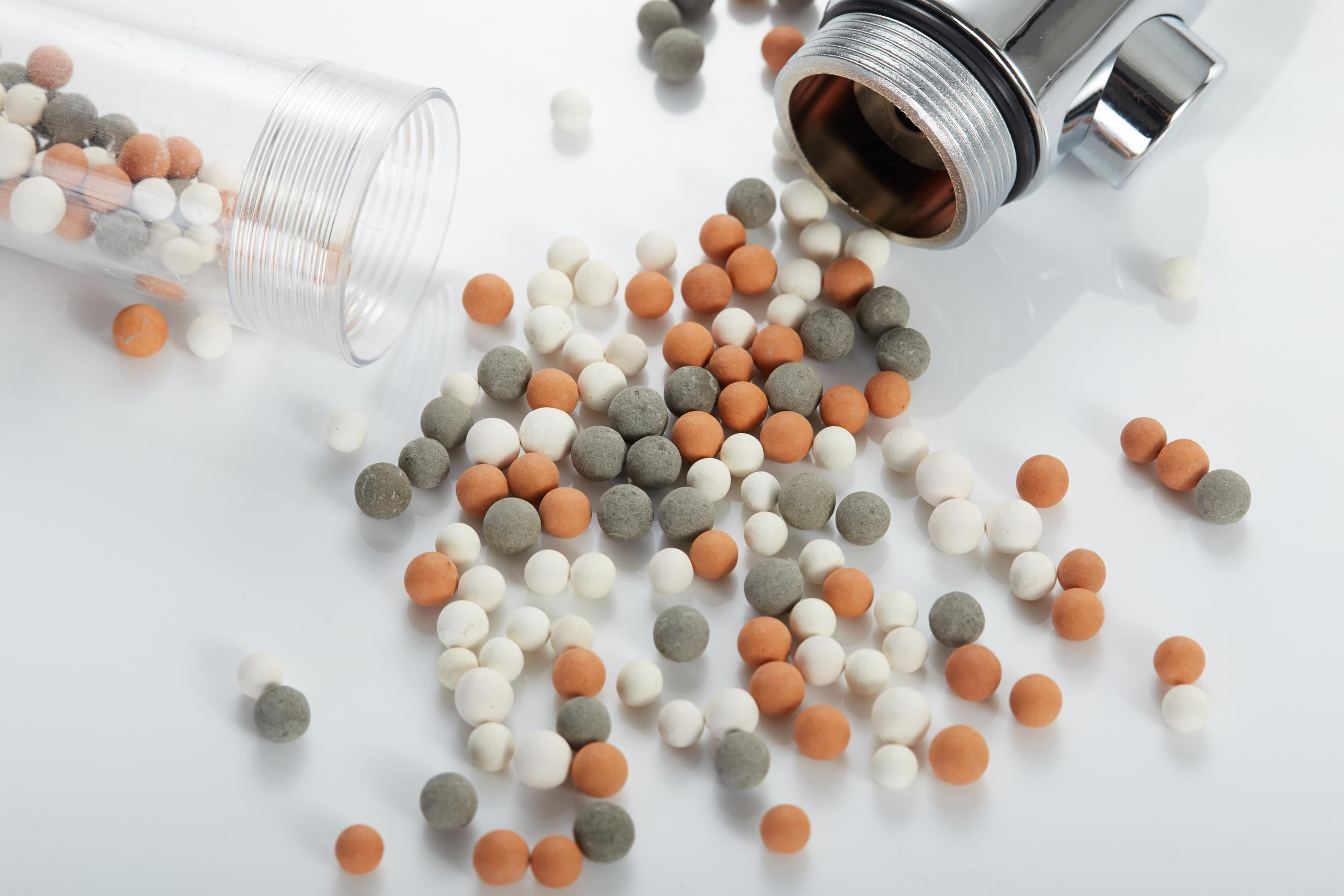 - SOFT, SPRING-LIKE WATER -Our new mixture of three types of mineralised Germanium beads will soften hard water, resulting in a natural spring-like quality. StoneStream Eco mineral shower head will help you restore pH balance to your hair and body by giving you much cleaner, soften and purify shower water