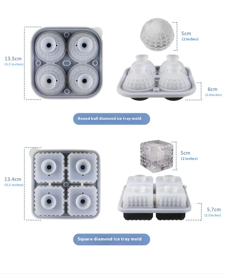 Square Diamond ice tray: 13.4*13.4*5.7cm(5.3*5.3*2.2 inches)