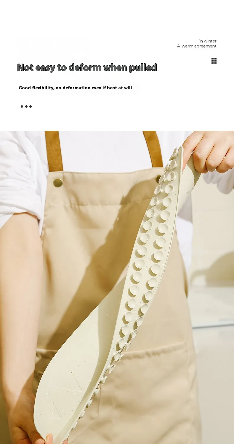 Silicone is gentle on surfaces and won’t scratch sink edges or countertops. It also stays securely in place during use without slipping or folding, thanks to its non-slip properties and natural grip on ceramic, stainless steel, and composite sinks.