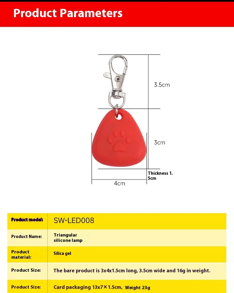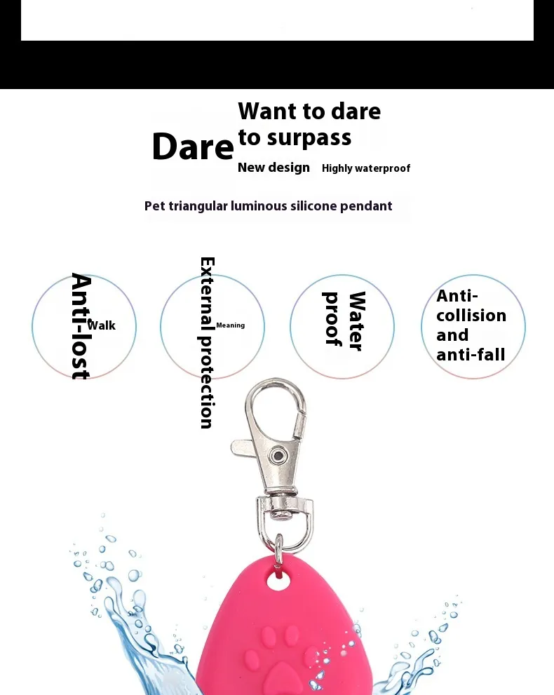 The Silicone Triangle Pendant Light-emitting Pendant Pet Supplies Ornaments is a must-have for pet owners who value both style and safety. Whether you're looking to increase your pet’s visibility at night or simply add a fun and stylish accessory to their outfit, this pendant does it all. Its LED light feature ensures your pet is visible during low-light conditions, making it perfect for evening walks, outdoor adventures, or nighttime play.