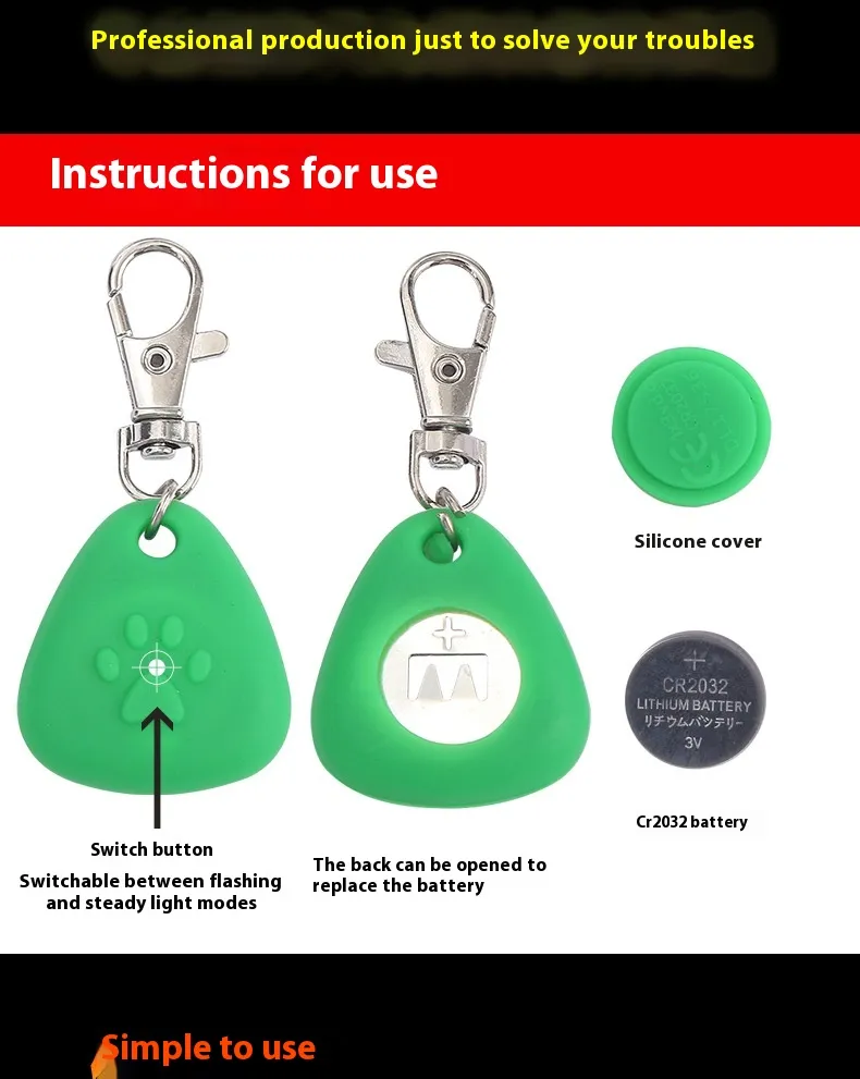 The pendant is made from soft, high-quality silicone that ensures comfort and safety, while its water-resistant design makes it suitable for all-weather use. With a long-lasting battery, a secure attachment clip, and a modern triangle design, the Silicone Triangle Pendant offers a unique and functional solution for pet accessories.