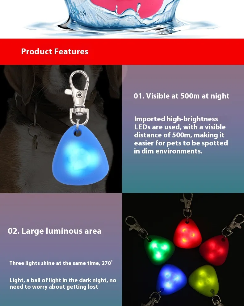 Stylish and Fun: The sleek triangle design and vibrant LED light add personality to your pet’s accessories, making them