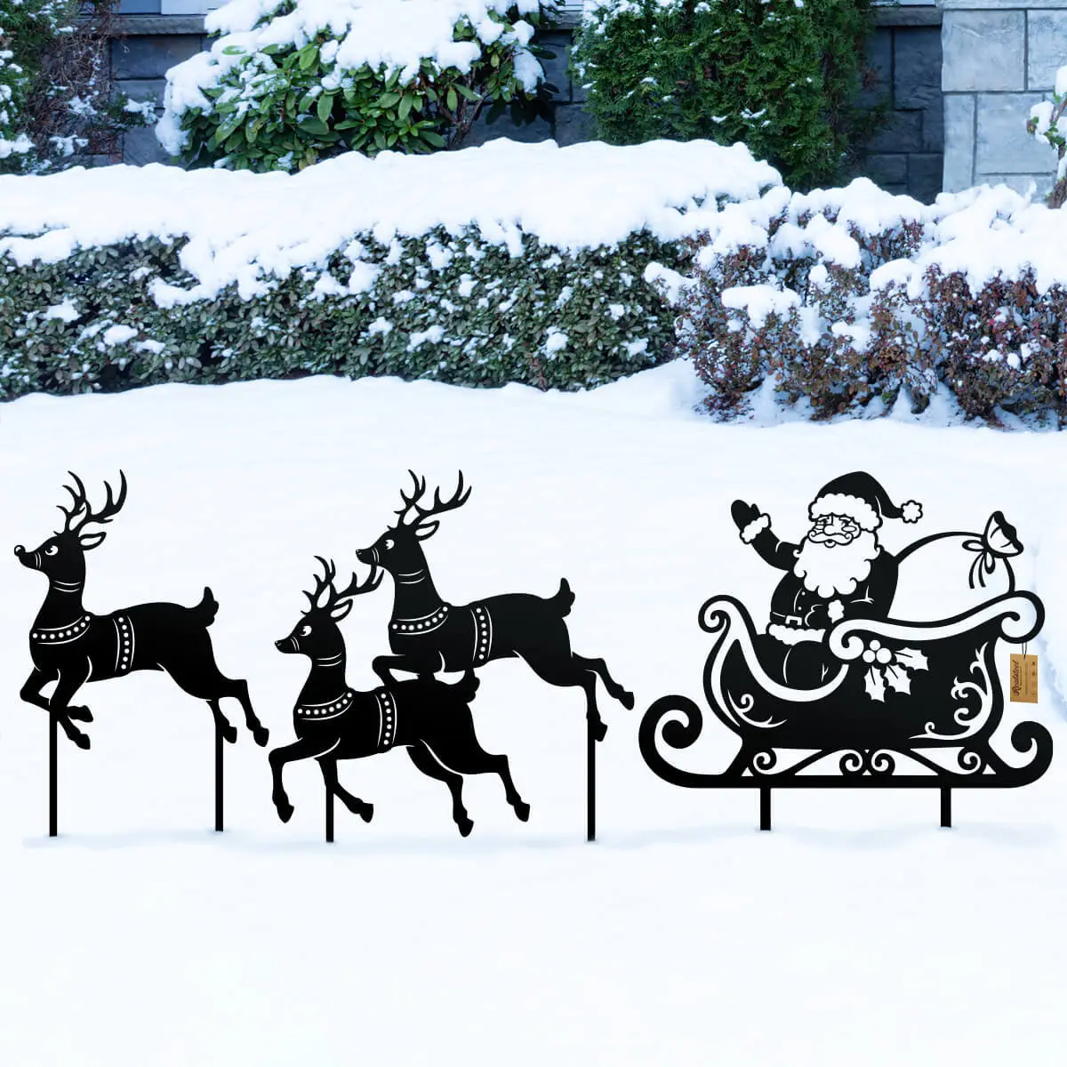 Las siluetas metálicas son una opción duradera y elegante para la decoración de exteriores. Sus llamativos diseños captan la atención y pueden soportar diversas condiciones climáticas, lo que los hace ideales para exhibiciones navideñas duraderas.