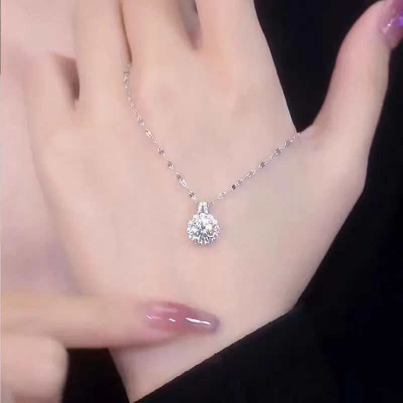 The pendant is crafted with a sleek silver setting that enhances the visibility of the moissanite stone. The minimal design ensures that the focus remains on the gemstone, creating a clean and sophisticated look that suits both modern and classic styles. This makes the necklace versatile enough for a wide range of occasions, from casual wear to more formal events.