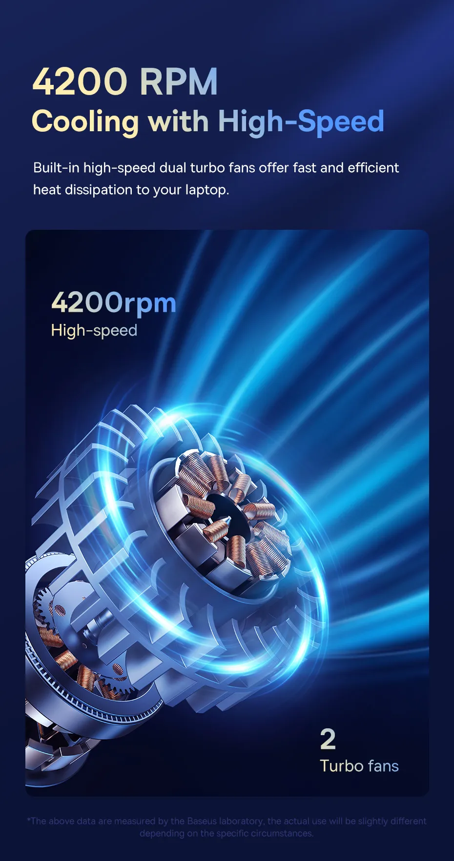 - High-Powered Turbofan Cooling – Efficiently dissipates heat to prevent laptop overheating.