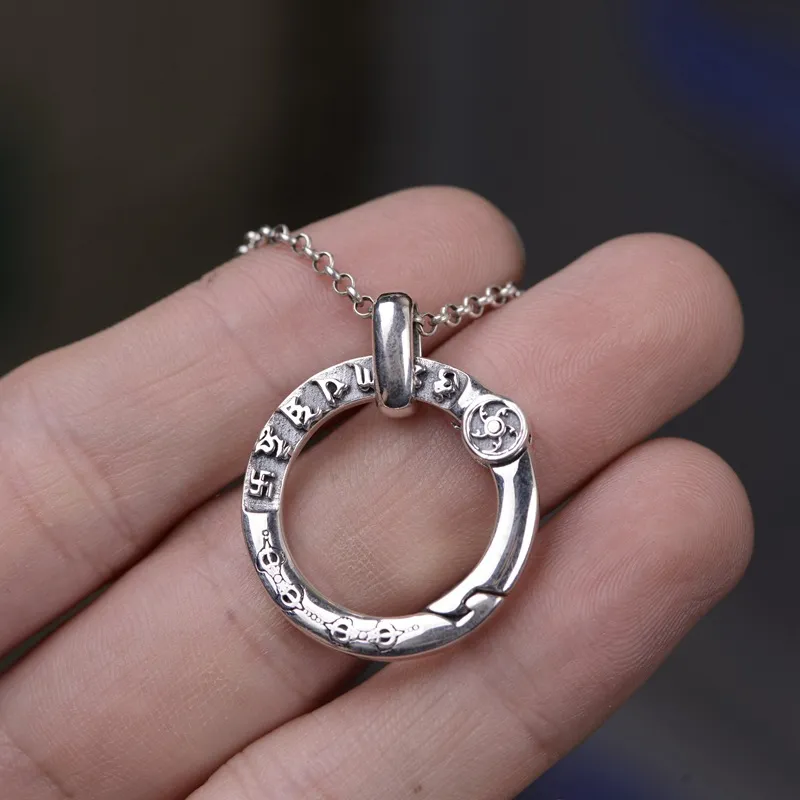Simple Design Silver Buckle Accessory Buckle Six-character Mantra Keychain