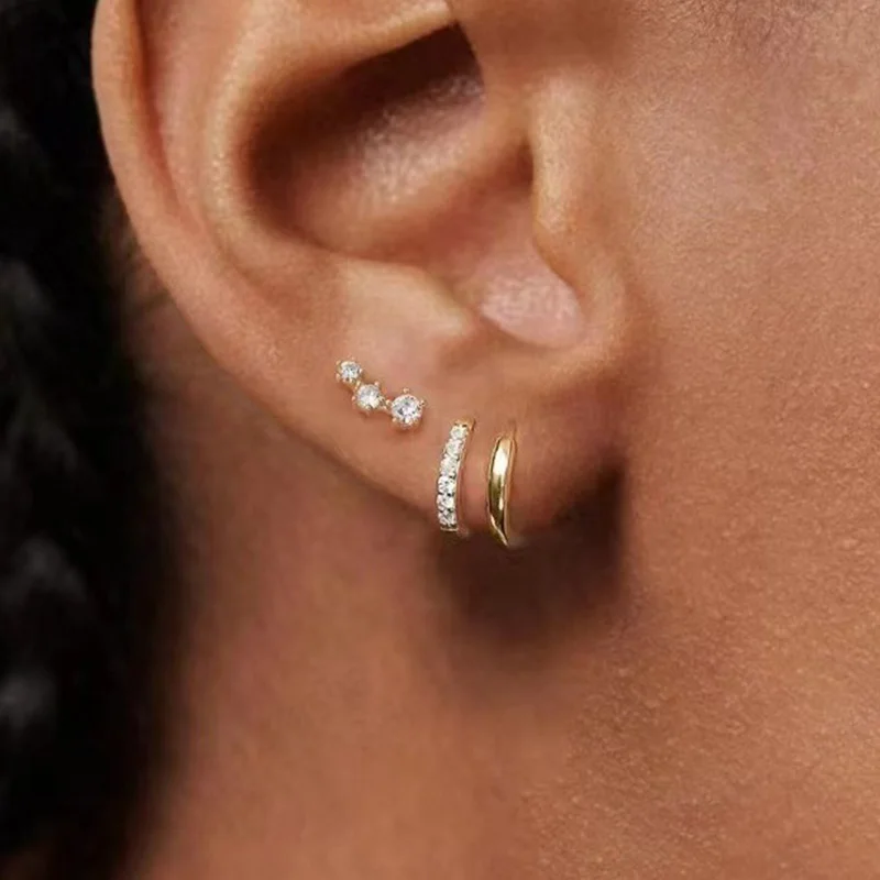 These simple hoop earrings are the epitome of minimalist elegance. Featuring a sleek, gold color finish, they are versatile enough to complement both casual and formal outfits. The inclusion of zircon stones adds just the right amount of sparkle, giving them a refined and sophisticated look.