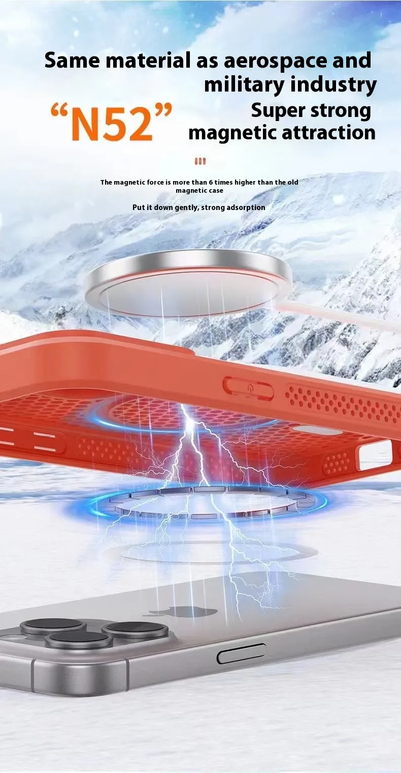 Constructed from high-quality materials, this case offers reliable protection against scratches, bumps, and everyday wear while maintaining a slim profile. The honeycomb mesh design enhances airflow to reduce heat build-up, and the magnetic feature ensures perfect alignment with compatible chargers and accessories.