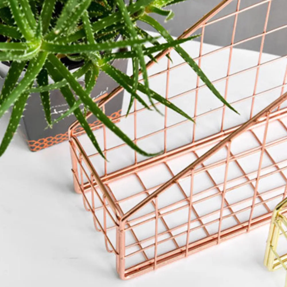 Simple Rose Gold File Rack Office Supplies Storage Basket