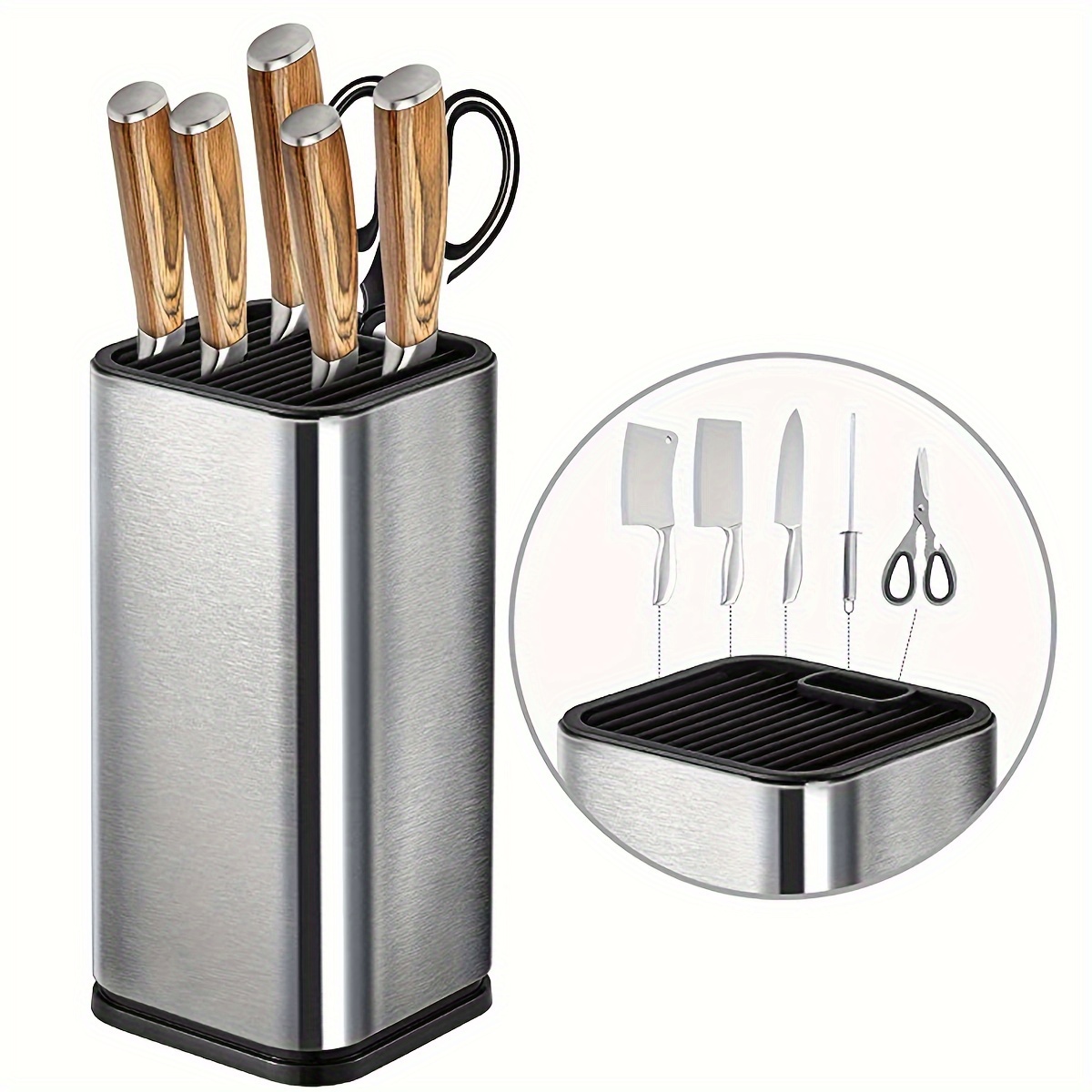 - Stainless Steel Knife Holder: Provides a safe and organized storage space for knives, helping to keep your blades sharp and easily accessible.