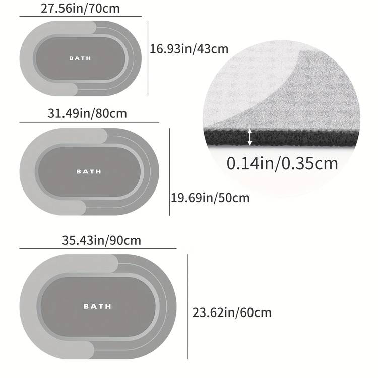 The SIXHOME Ultra-Absorbent Quick-Dry Bath Mat is designed to provide comfort, safety, and style to any bathroom. Made from 100% polyester blend with a soft diatomaceous earth material, this mat offers quick-drying, ultra-absorbent performance while maintaining a thin and door-friendly design. The non-slip rubber backing ensures stability, making it ideal for modern bathrooms, apartment living, or any high-traffic bathroom area.