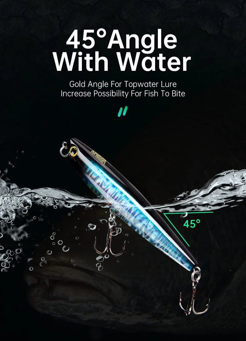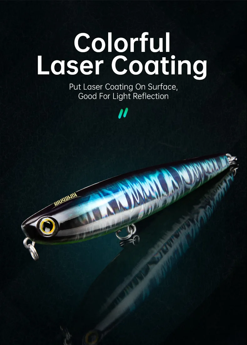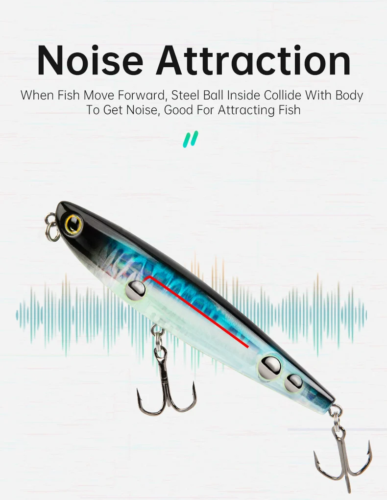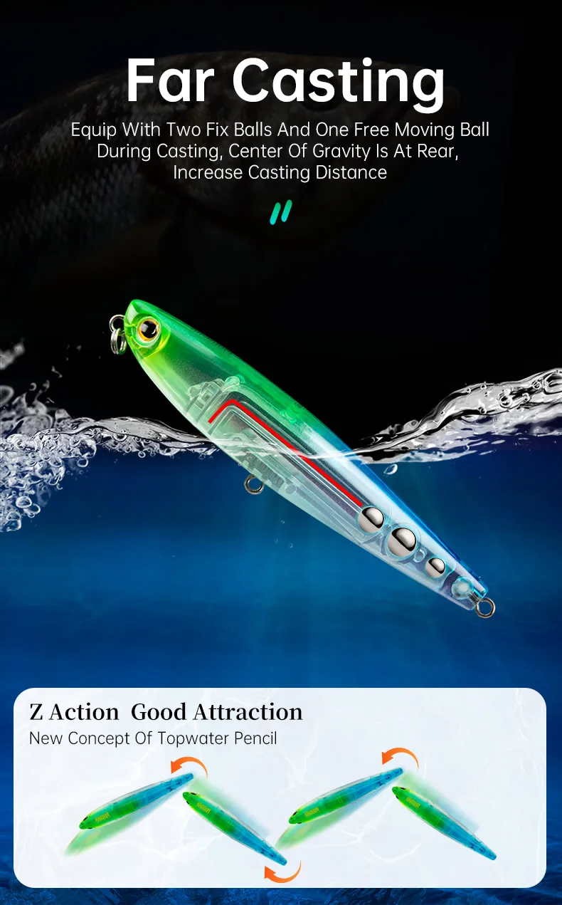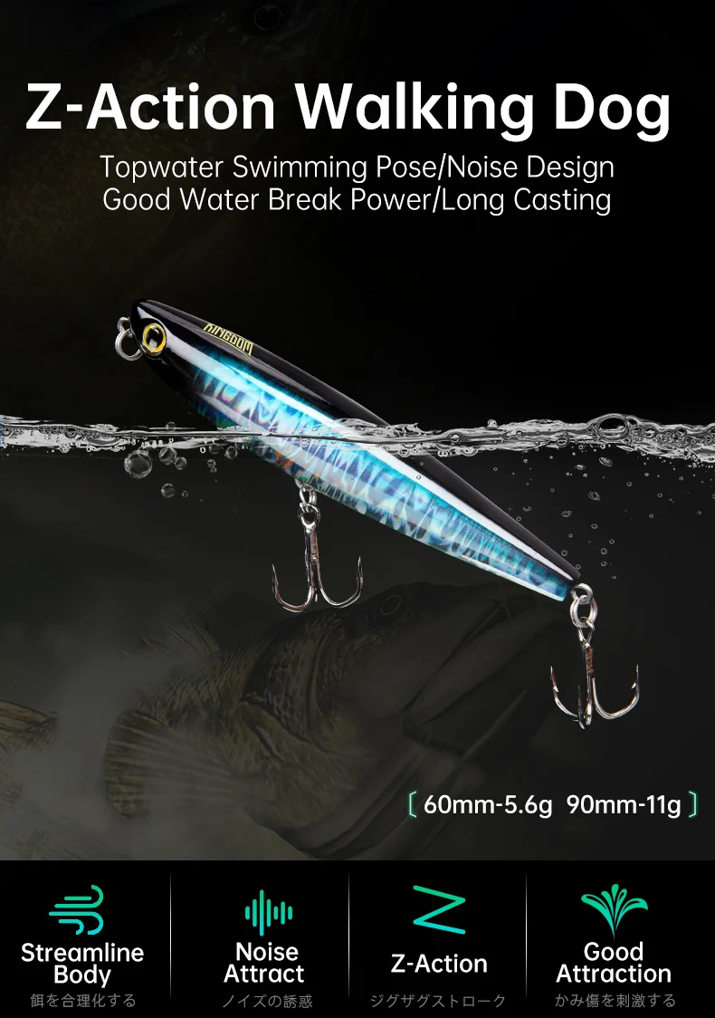• Artificial Lure Walking Dog Action :The walking dog action of this lure, mimics the movement of a injured or frightened animal, attracting predatory fish.