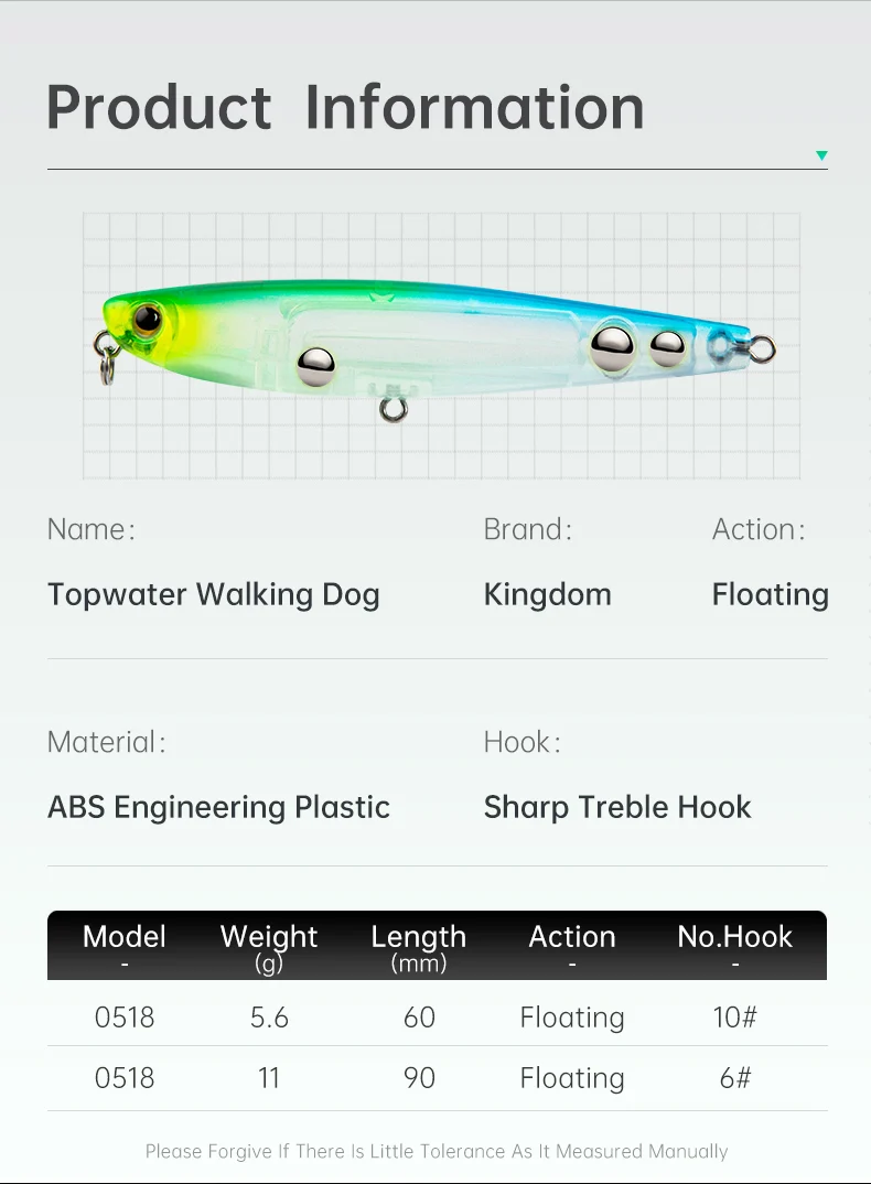 • Versatile Size Options :Available in two sizes - 60mm and 90mm, this lure caters to different fishing needs. The 5.6g and 11g weight options provide flexibility for different water conditions.